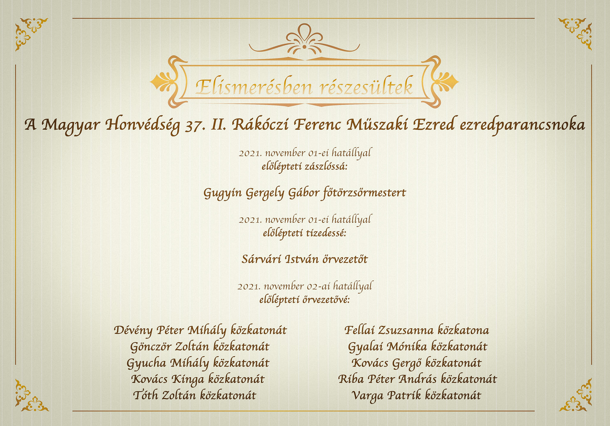 Kezdőlap MH 37. II. Rákóczi Ferenc Műszaki Ezred Elismerések átadásával és előléptetésekkel kezdődött október hónap utolsó vezető…