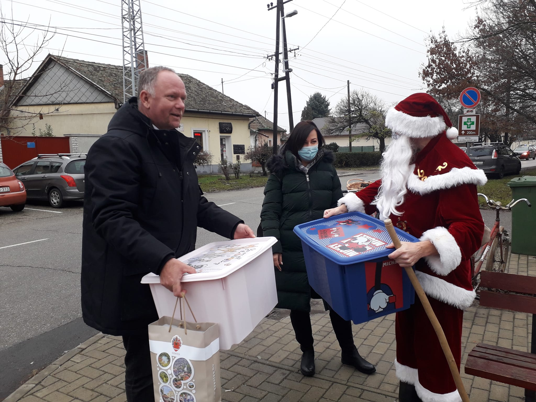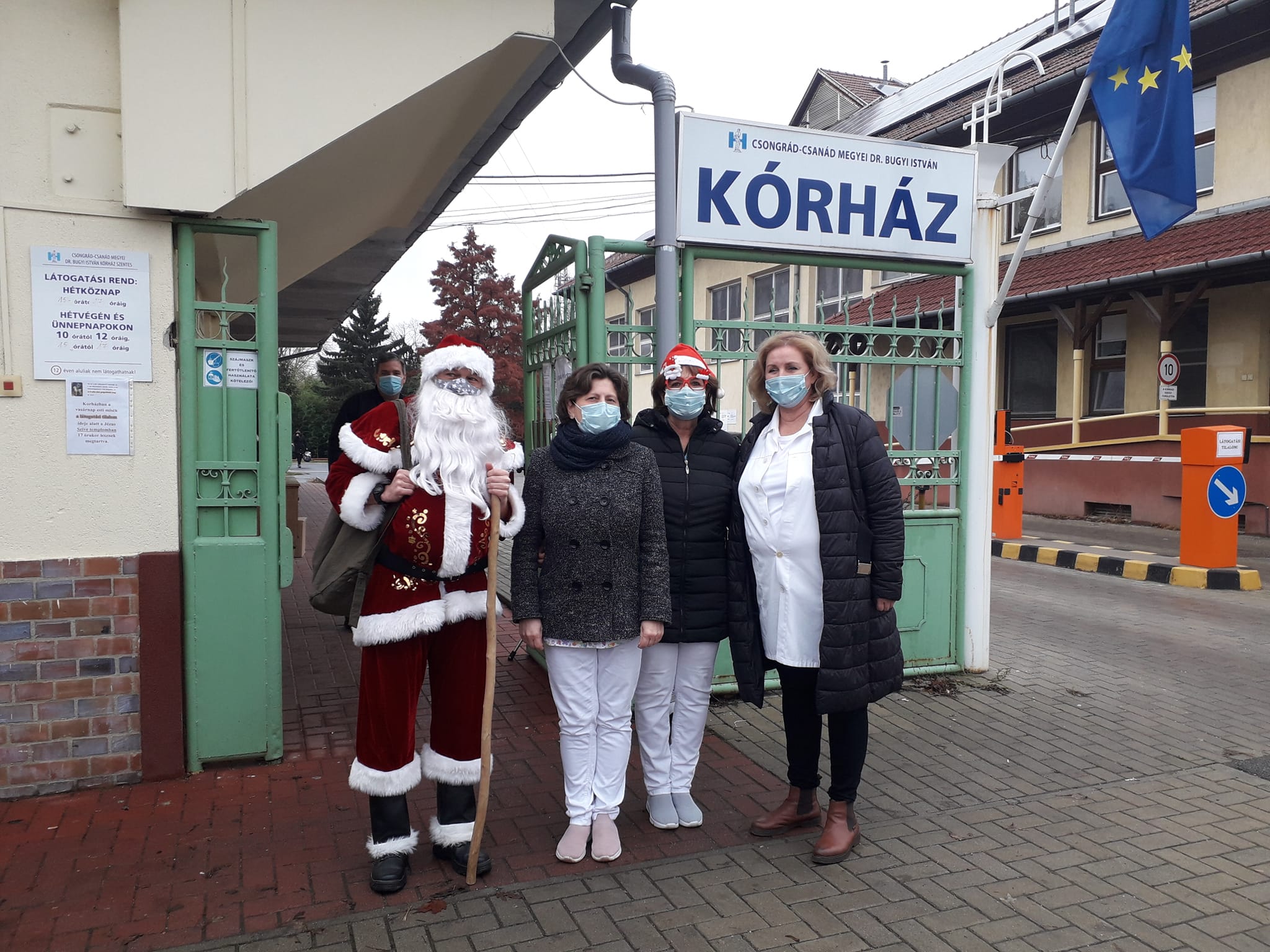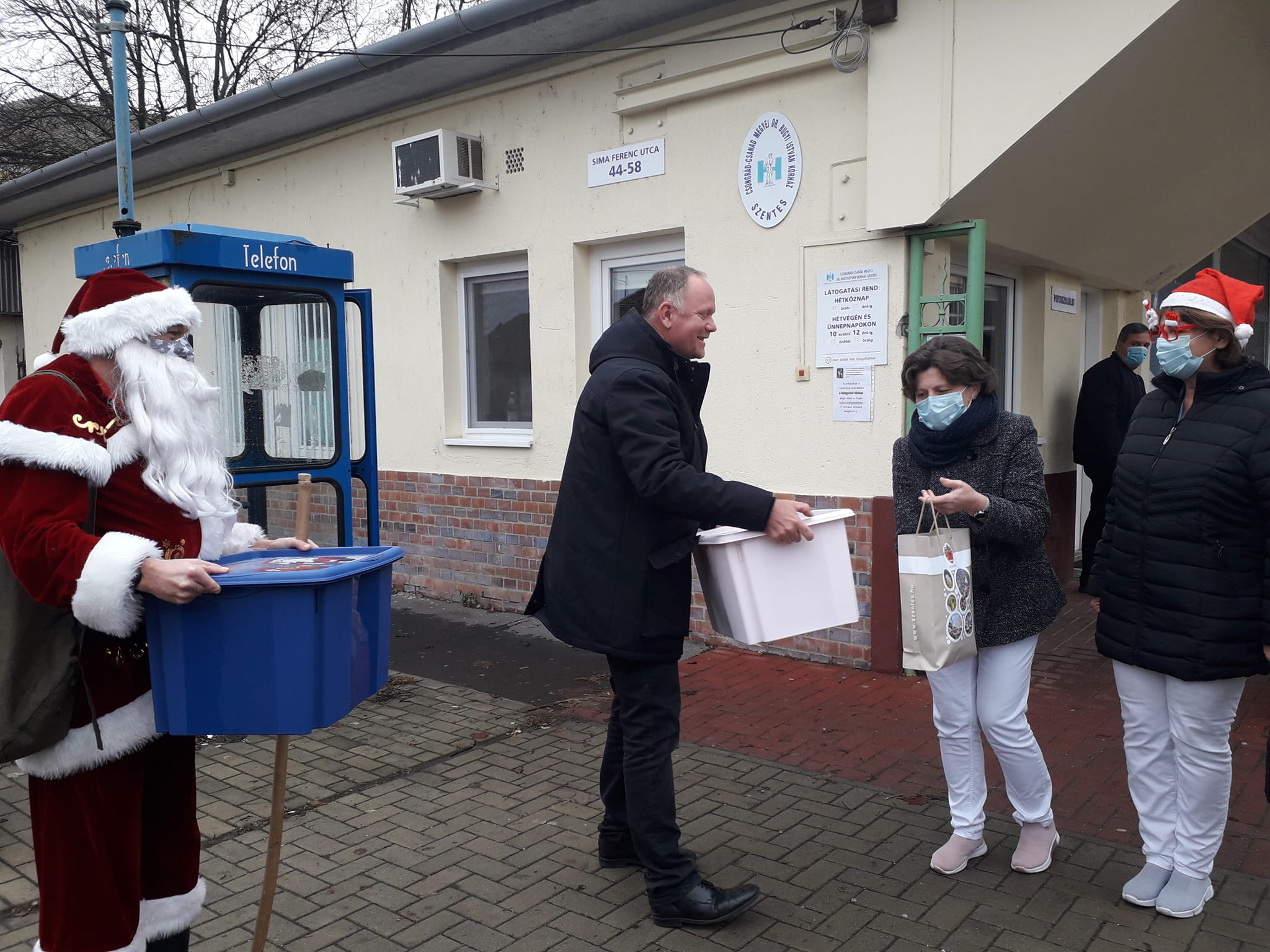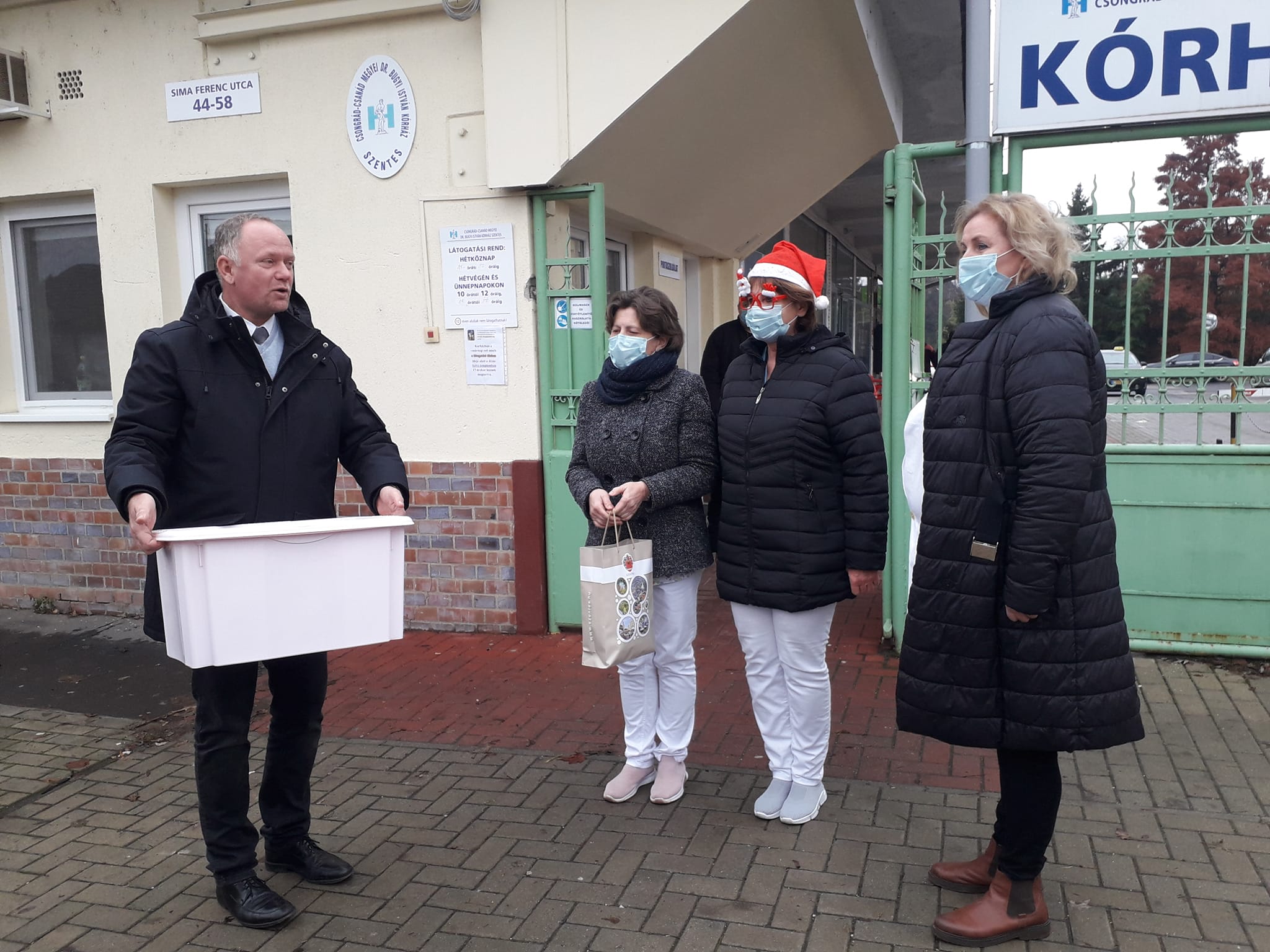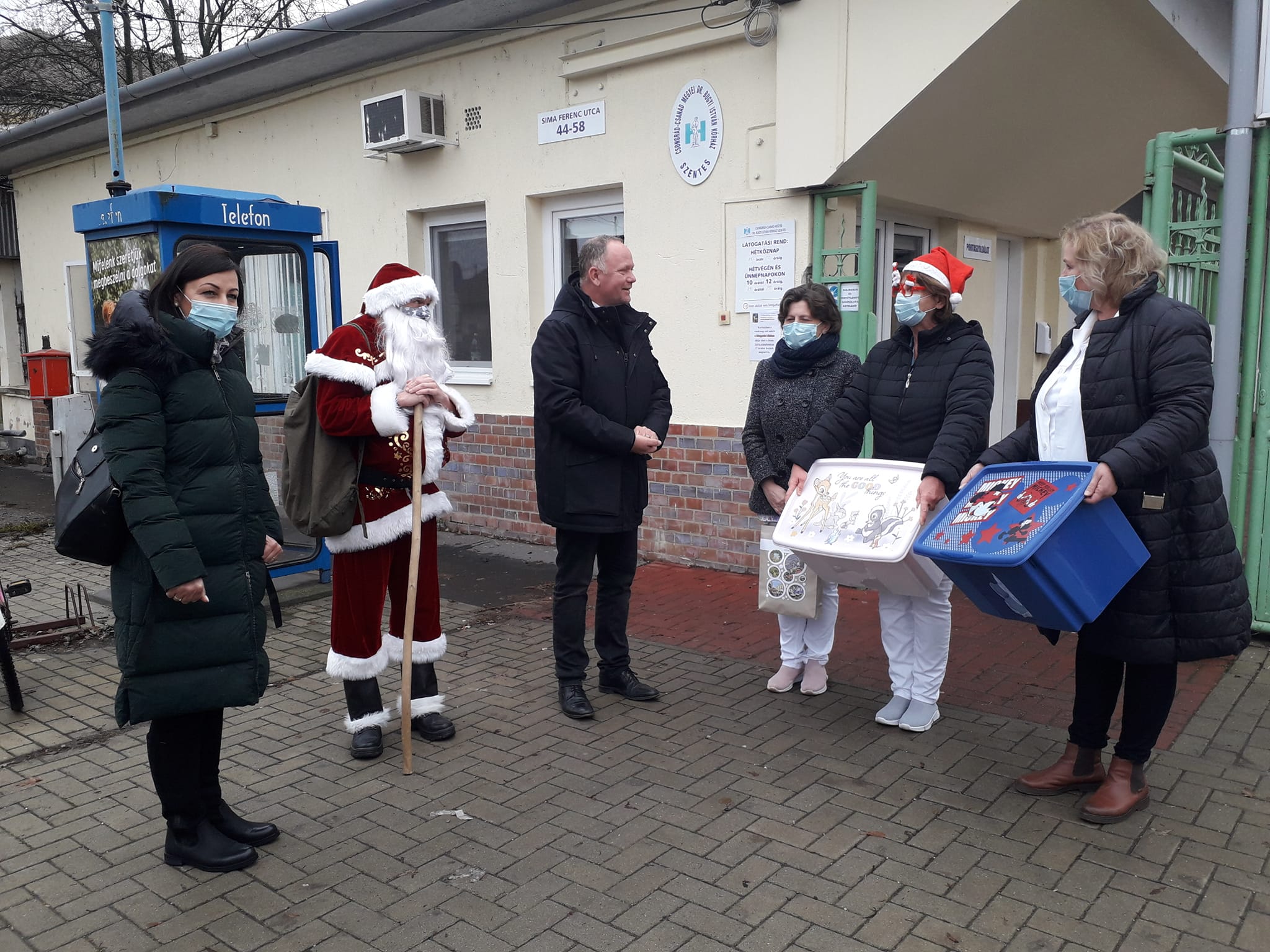 A hagyományokhoz híven az önkormányzat Mikulása az idén is megajándékozta a kórház gyermekosztályát. Szabó Zoltán Ferenc polgármester és Hajós Viktória marketing referens december 6-an délelőtt adták át a 100 ezer forint értékű ajándékot az egészségügyi intézmény előtt dr. Abebené Bagi Márta ápolási igazgatónak, dr. Hetyei Erika főorvosnak és Vácziné Székely Gyöngyvér főnővérnek.