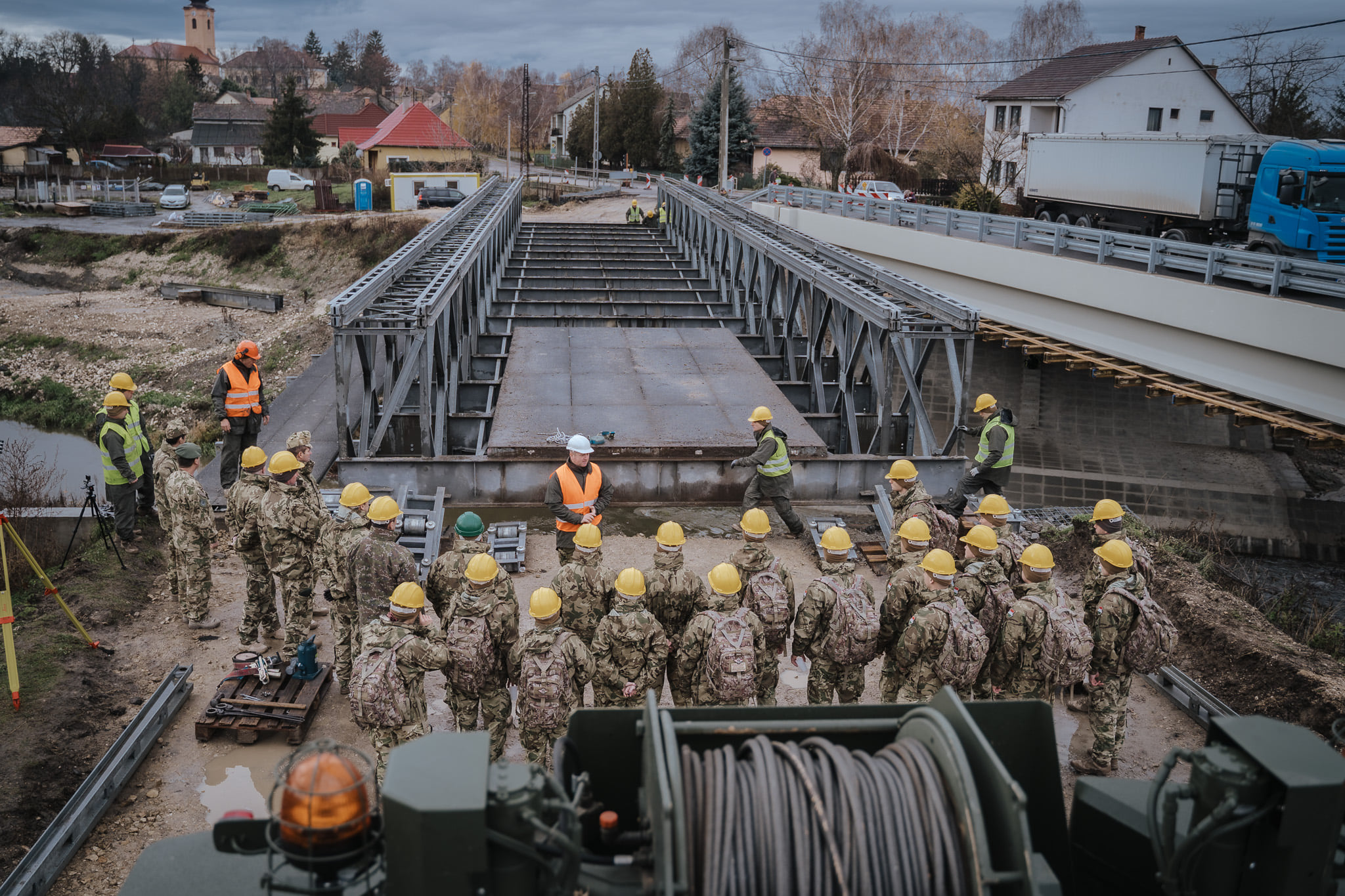 A Magyar Hadtudományi Társaság Műszaki Szakosztálya, a Közép-európai Többnemzeti Hadosztály-parancsnokság műszaki főnökségének magyar és szlovák műszaki szaktisztjei, valamint a Nemzeti Közszolgálati Egyetem Ludovika Zászlóaljának harmad és negyedéves műszaki tiszti hallgatói tettek látogatást Pincehelyen, ahol a műszaki ezred katonái által épített ideiglenes híd bontási folyamataiba nézhettek bele.