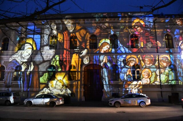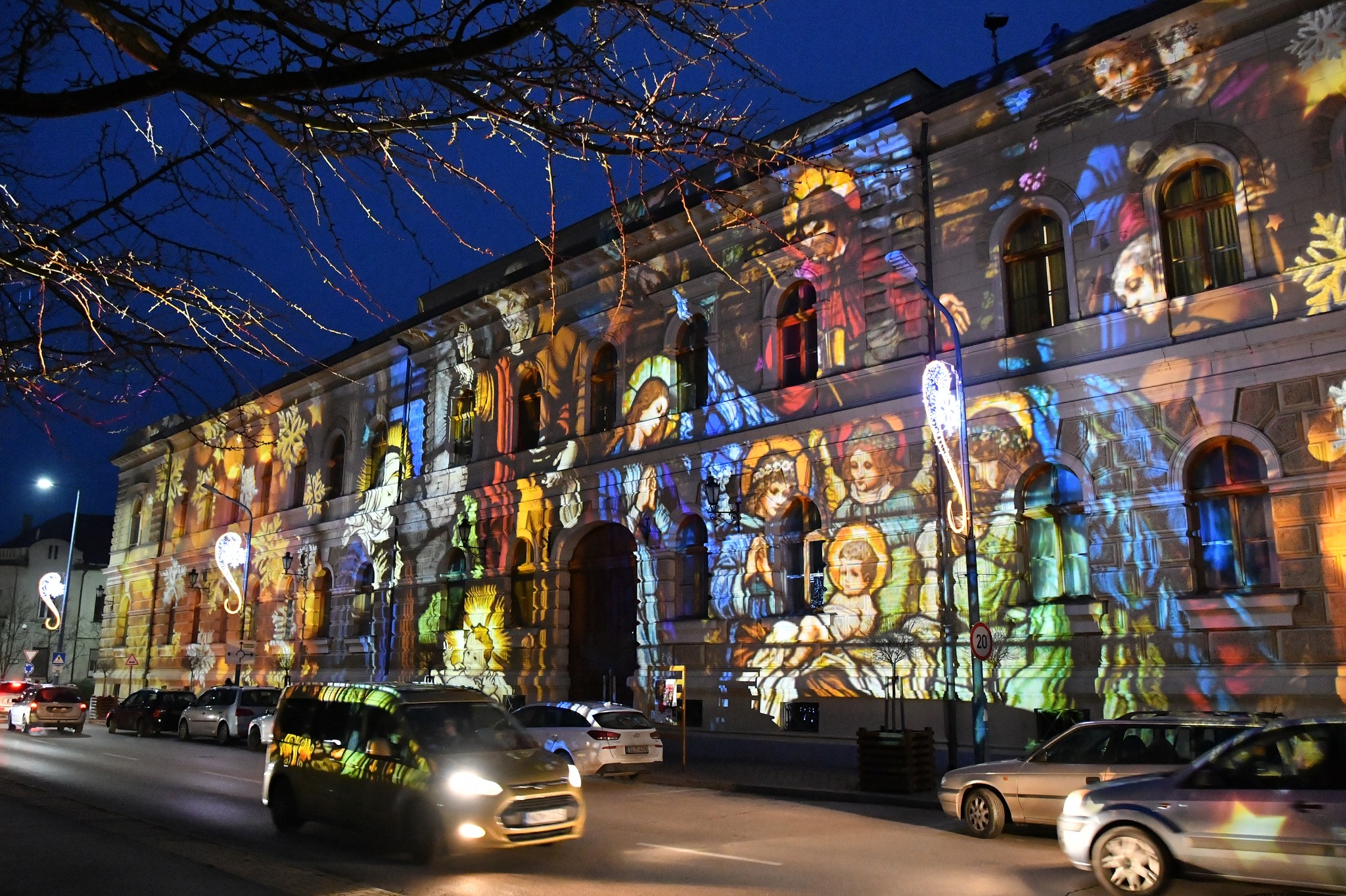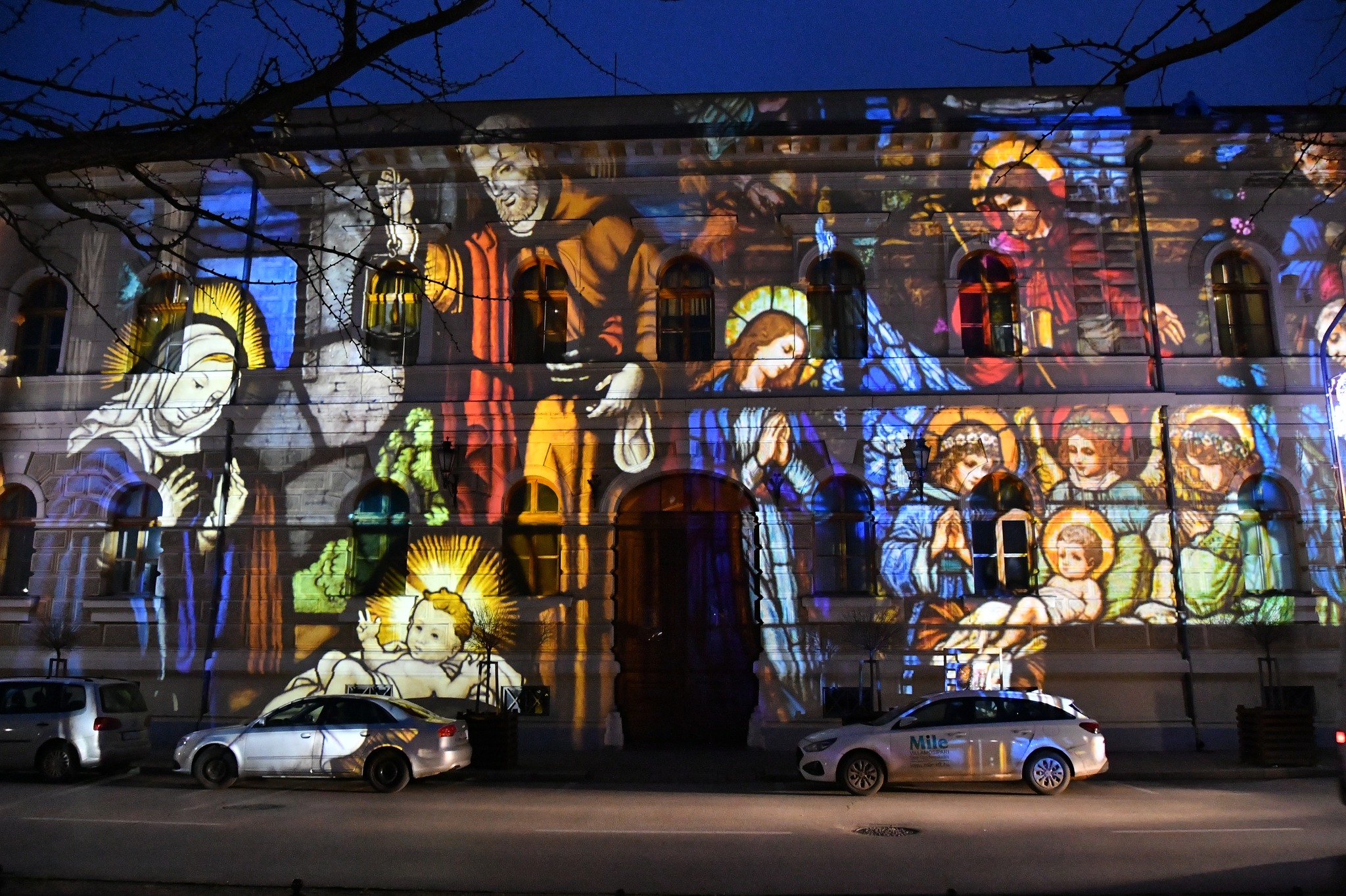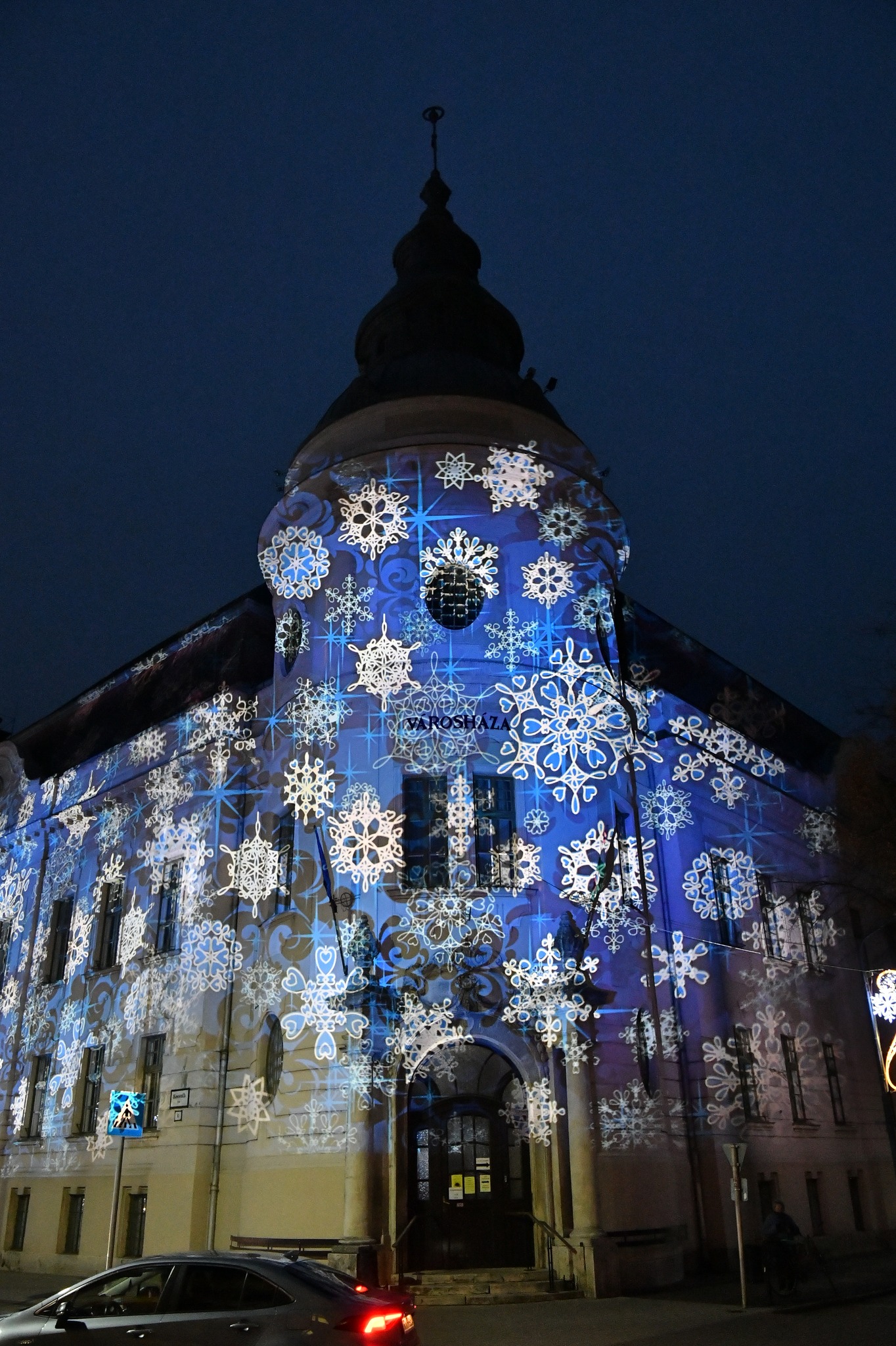 Az elmúlt héten a Mikulás és ahhoz kapcsolódó témák jelentek meg fényfestésben, a mostani hétvégén egyházi képek, grafikák színesítették a Megyeháza homlokzatát. A Városházán ábrázolt hópelyhek reméljük, hogy hamarosan megvalósulnak. Bár az időjósok nem ígérnek fehér karácsonyt, de reméljük hamarosan örülhetünk egy kis hónak!