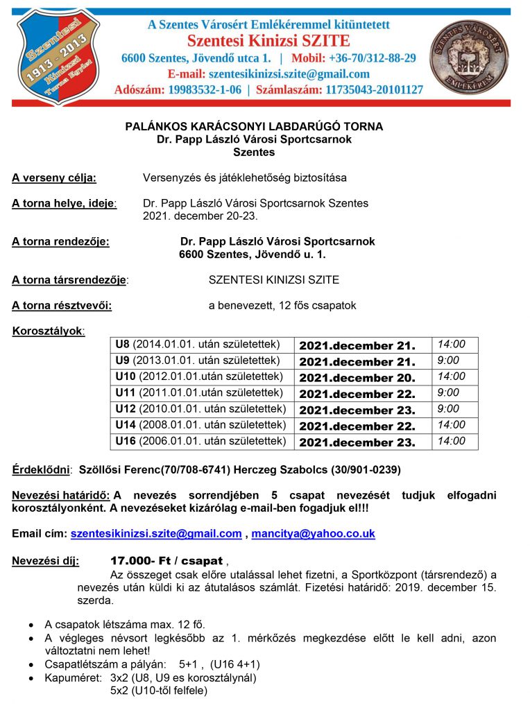 Klubunk a szentesi Sportközponttal együttműködve a 2021-es évben is megrendezi a Palánkos Labdarúgó Tornát melynek részleteit megtaláljátok weboldalunk „programok” fülén. Gólokban gazdag mérkőzéseket kívánunk mindenkinek!