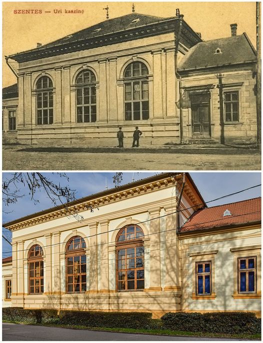 A korhű arculattal felújított Kiss Bálint utca vonalát az egykori Úri Kaszinó méltóságteljes épülete töri meg. Terveit 130 éve Makay Endre, a Megyeháza megálmodója készítette el. A háború után pártház is volt, ma pedig a falai között működő Szentesi Lajtha László Alapfokú Művészeti Iskola és a Hangversenyközpont révén városunk egyik kulturális centruma. Tímár Ferenc rovatát a Szentesi Élet 11. oldalán olvashatják. Fotók:Rázsó Manó (1912) és Tofán Sándor (2021).