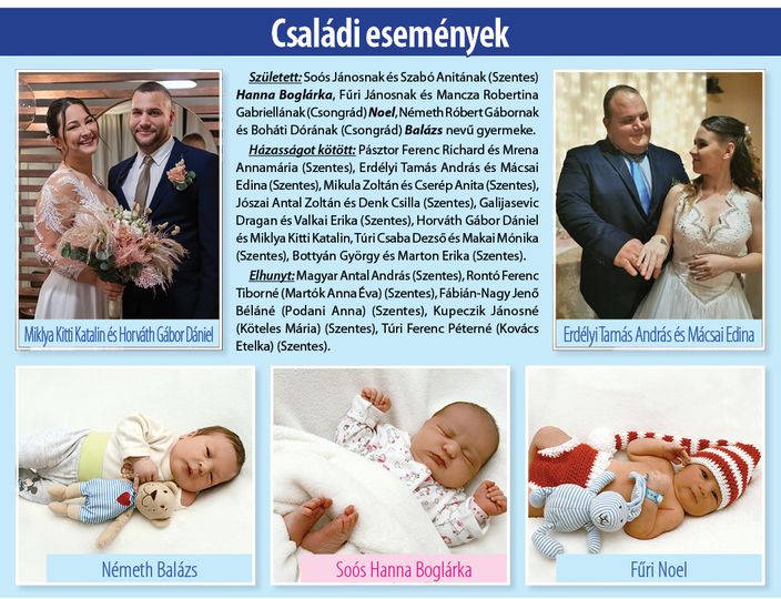 Kezdőlap Szentesi Élet A december 17-én megjelent 50. lapszámunk családi eseményei…