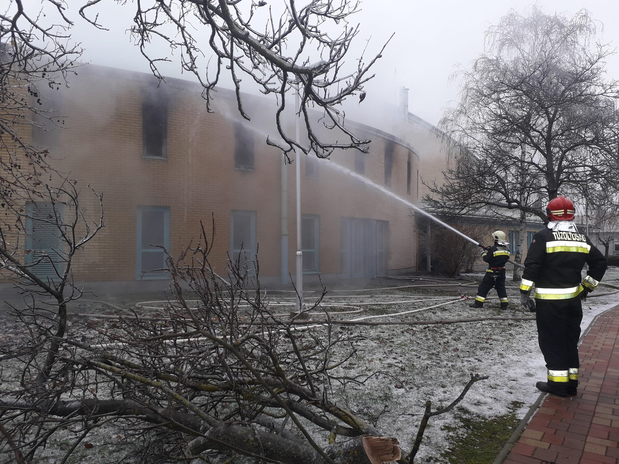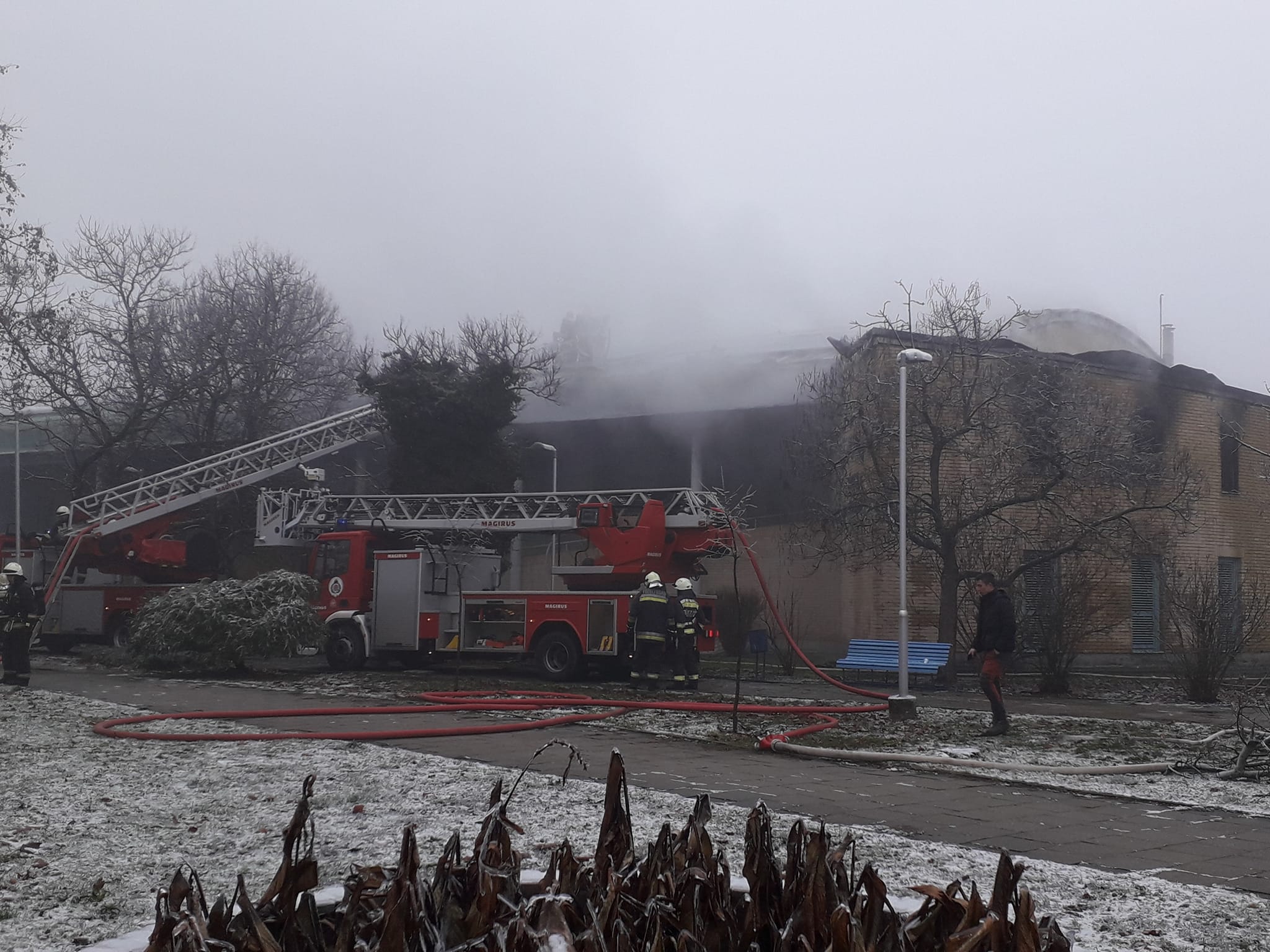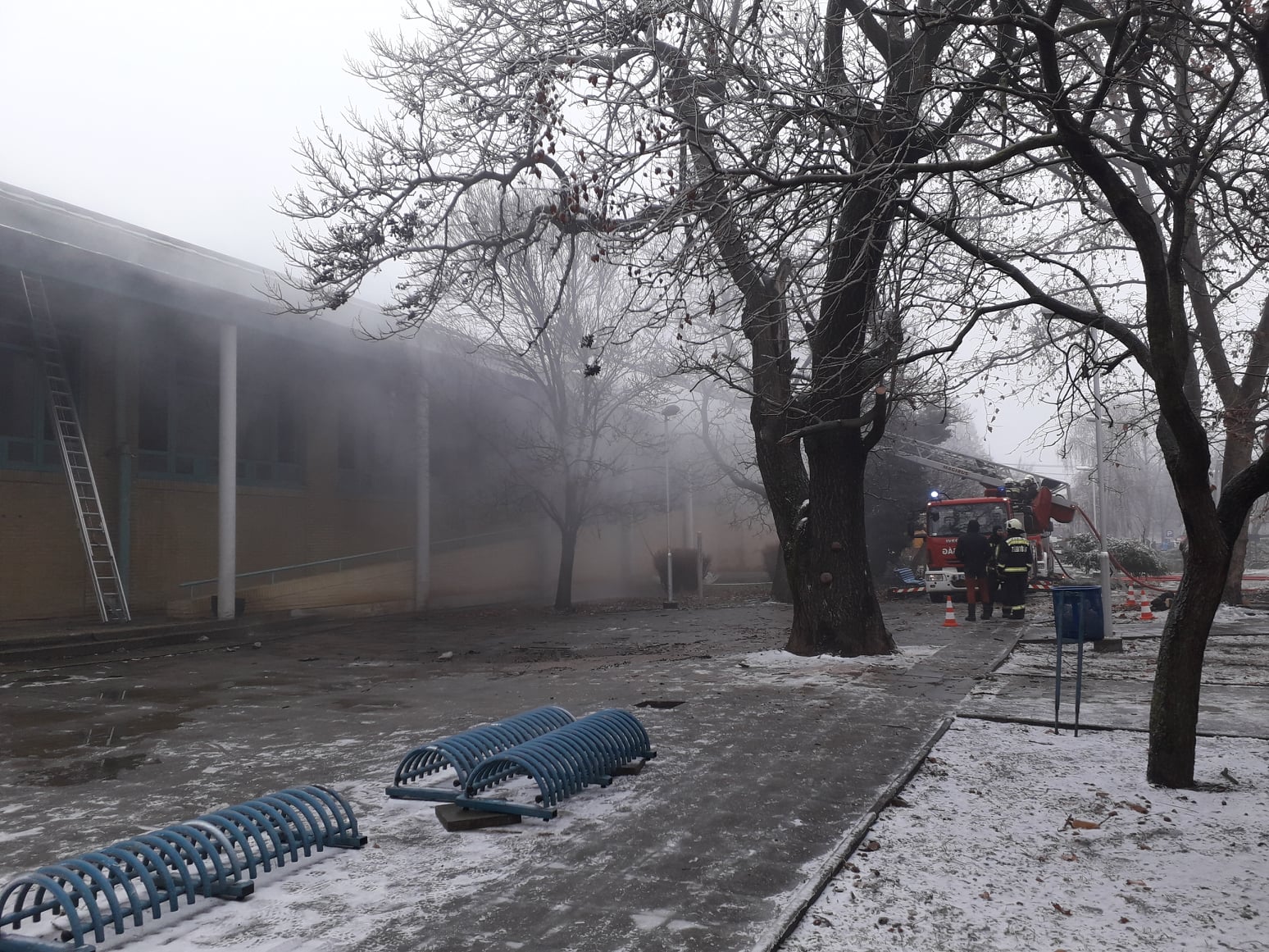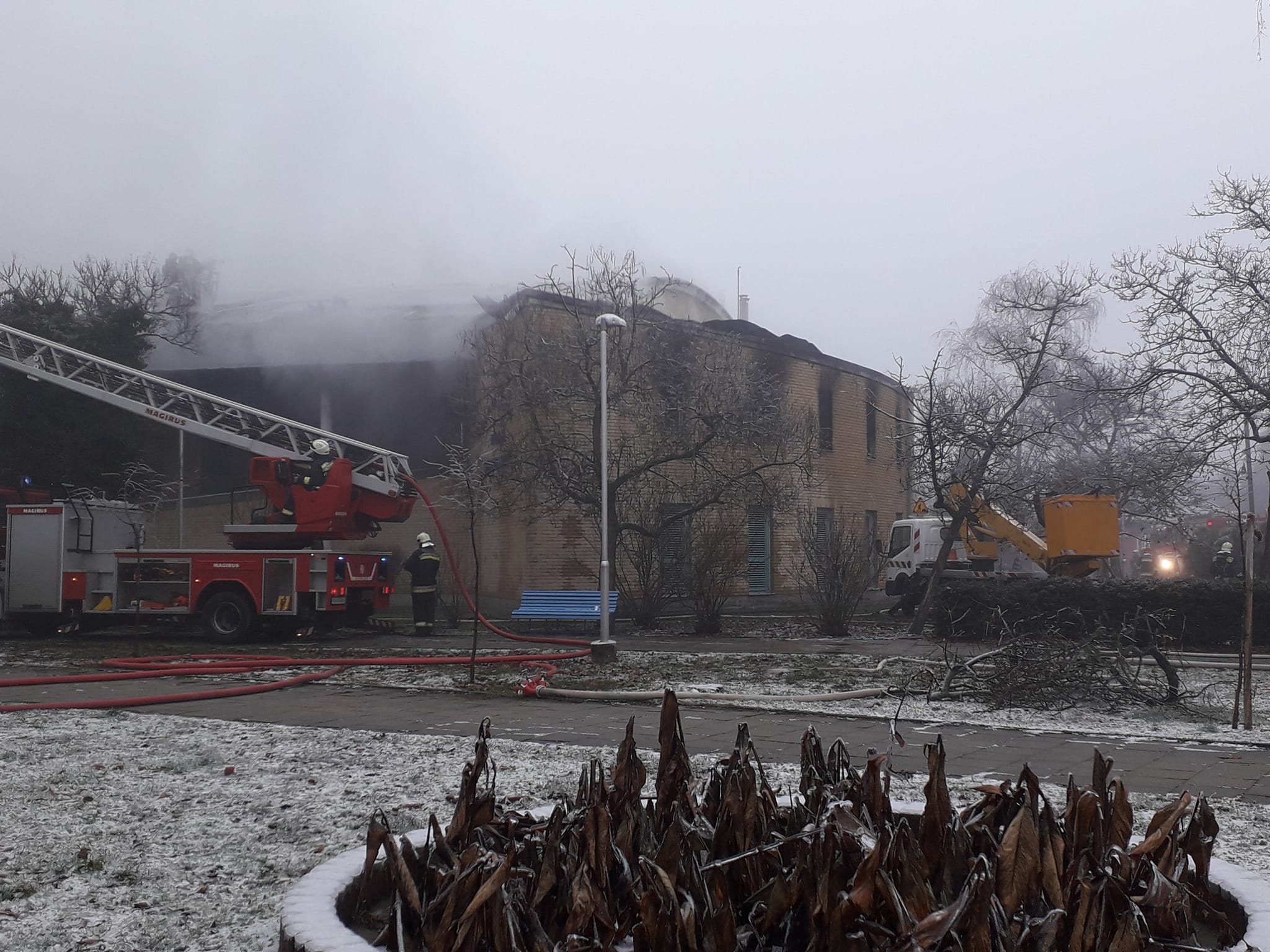Reggel csaptak fel a lángok a Dr. Papp László Városi Sportcsarnok épületében, délután 2 órakor még mindig küzdenek a helyszínen a tűzoltók, hogy az utolsó tűzfészket is eloltsák.