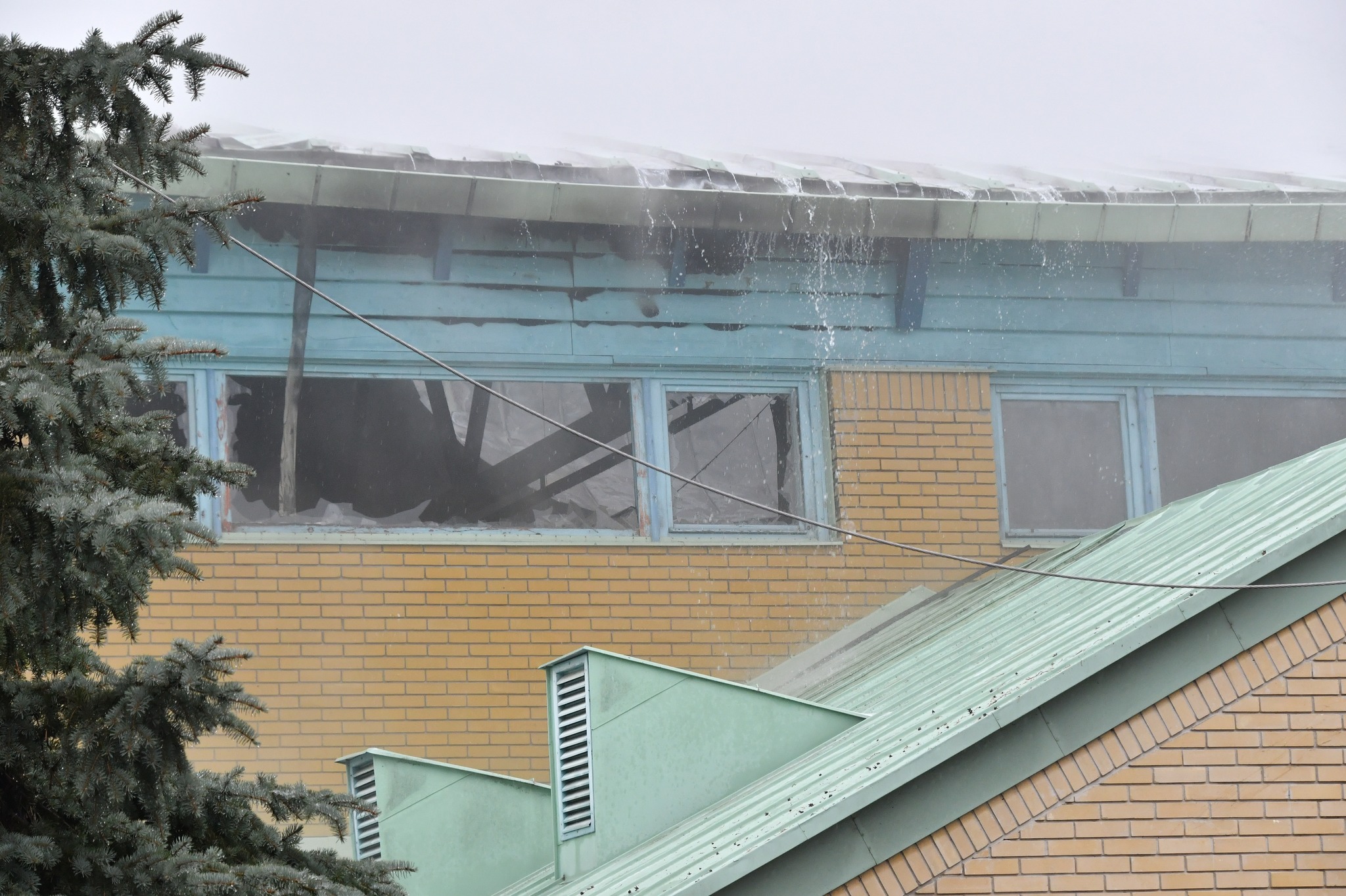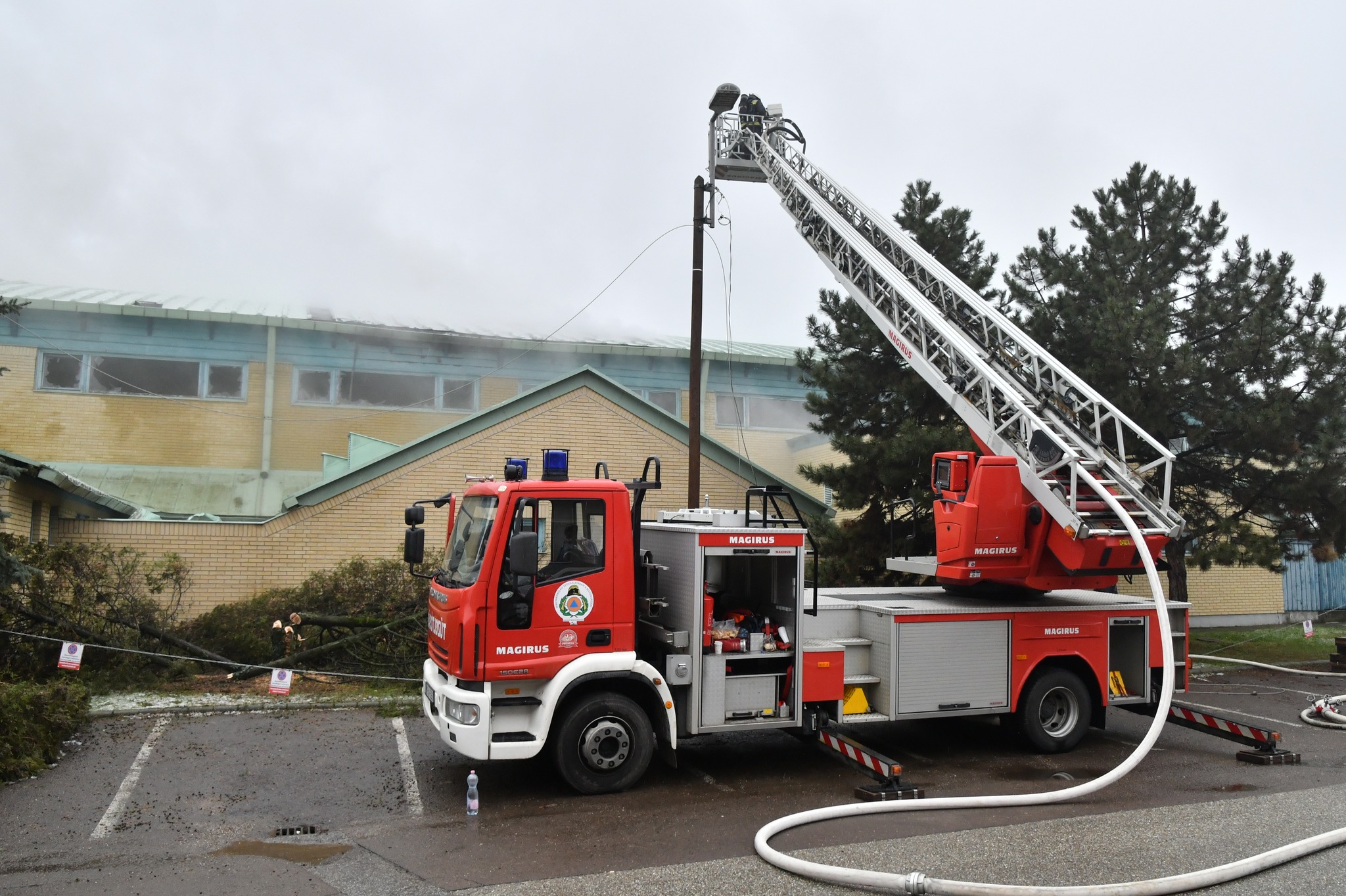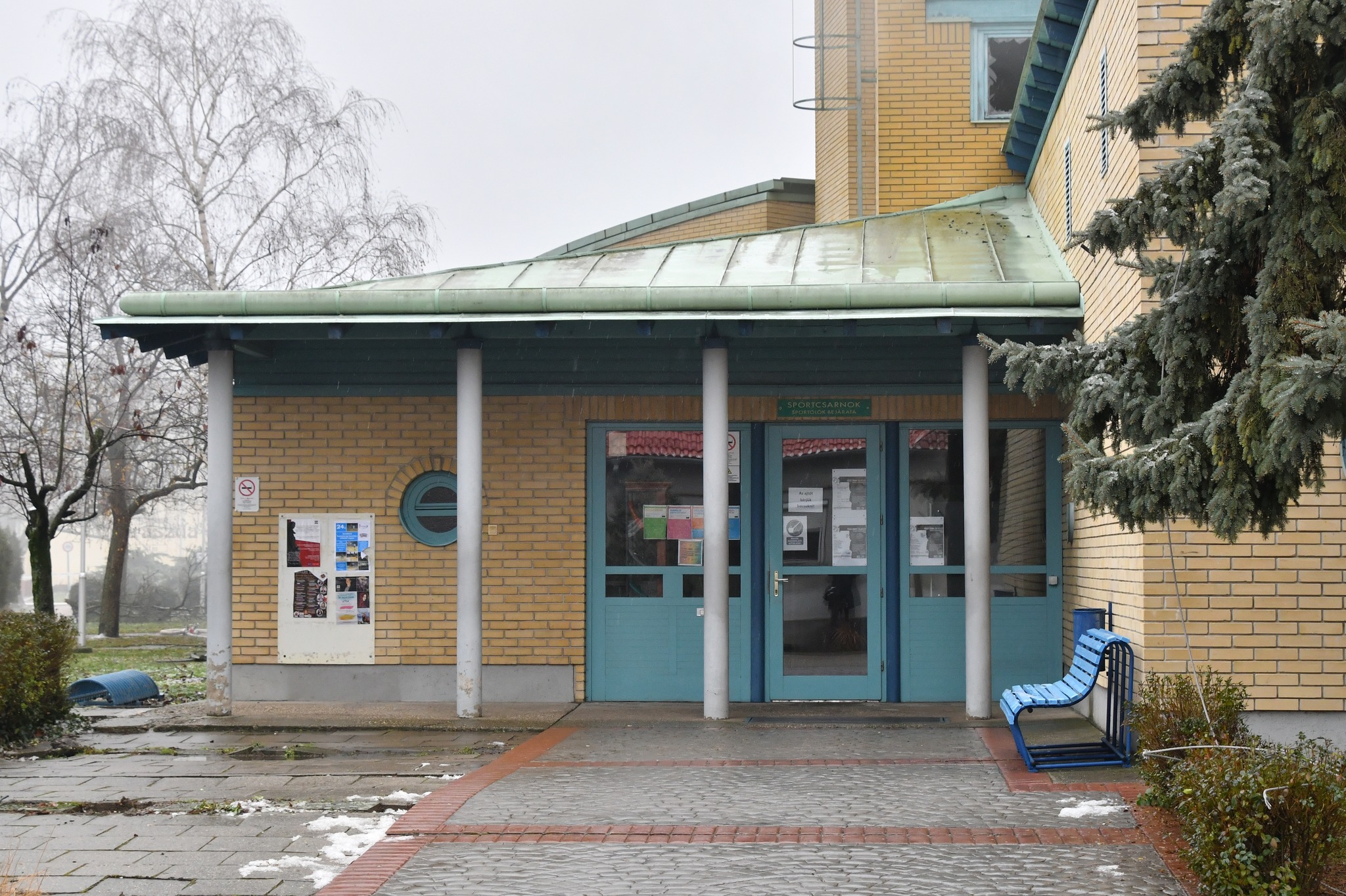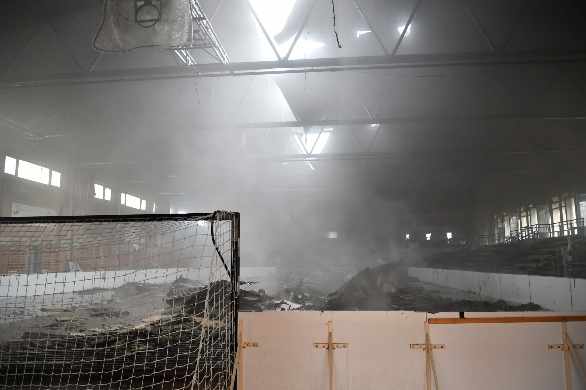 Sajnos elég durva látványt mutatnak a 2021. december 29-én 11 óra körül készült képek. Olyan állapotban van a sportcsarnok teteje, hogy bárhol, bármikor beomolhat.