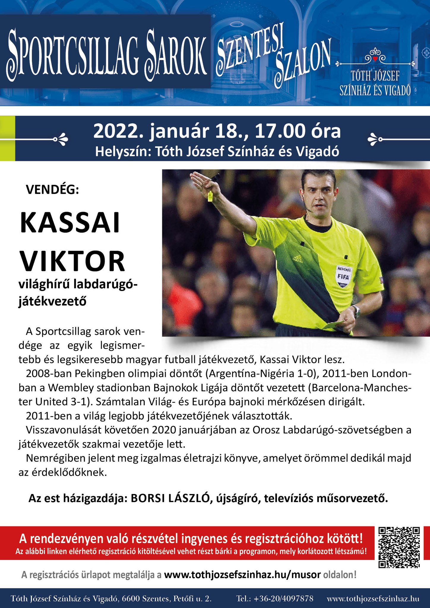 Január 18., kedd 17.00 Szentesi Szalon – Sportcsillag sarok; Vendég: Kassai Viktor világhírű labdarúgó-játékvezető