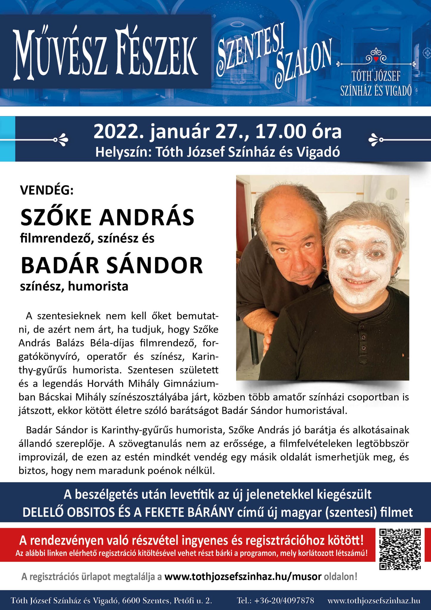 Január 27., csütörtök 17.00 Szentesi Szalon – Művész Fészek; Vendég: Szőke András filmrendező, színész és Badár Sándor színész, humorista. (A beszélgetés után levetítik az új jelenetekkel kiegészült DELELŐ OBSITOS ÉS A FEKETE BÁRÁNY című új magyar /szentesi/ filmet)