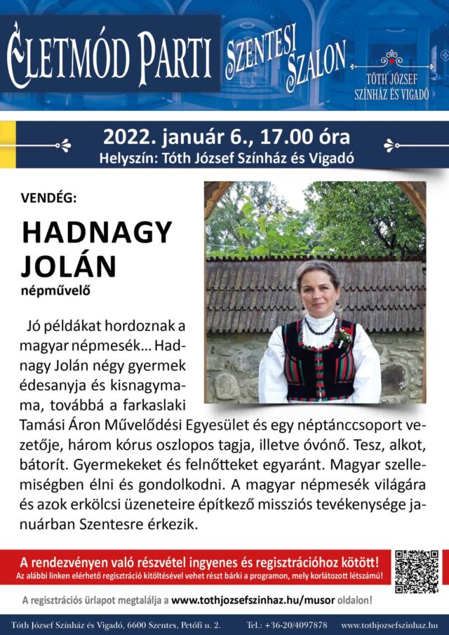 Január 6., csütörtök 17.00 Szentesi Szalon – Életmód Party; Vendég: Hadnagy Jolán népművelő