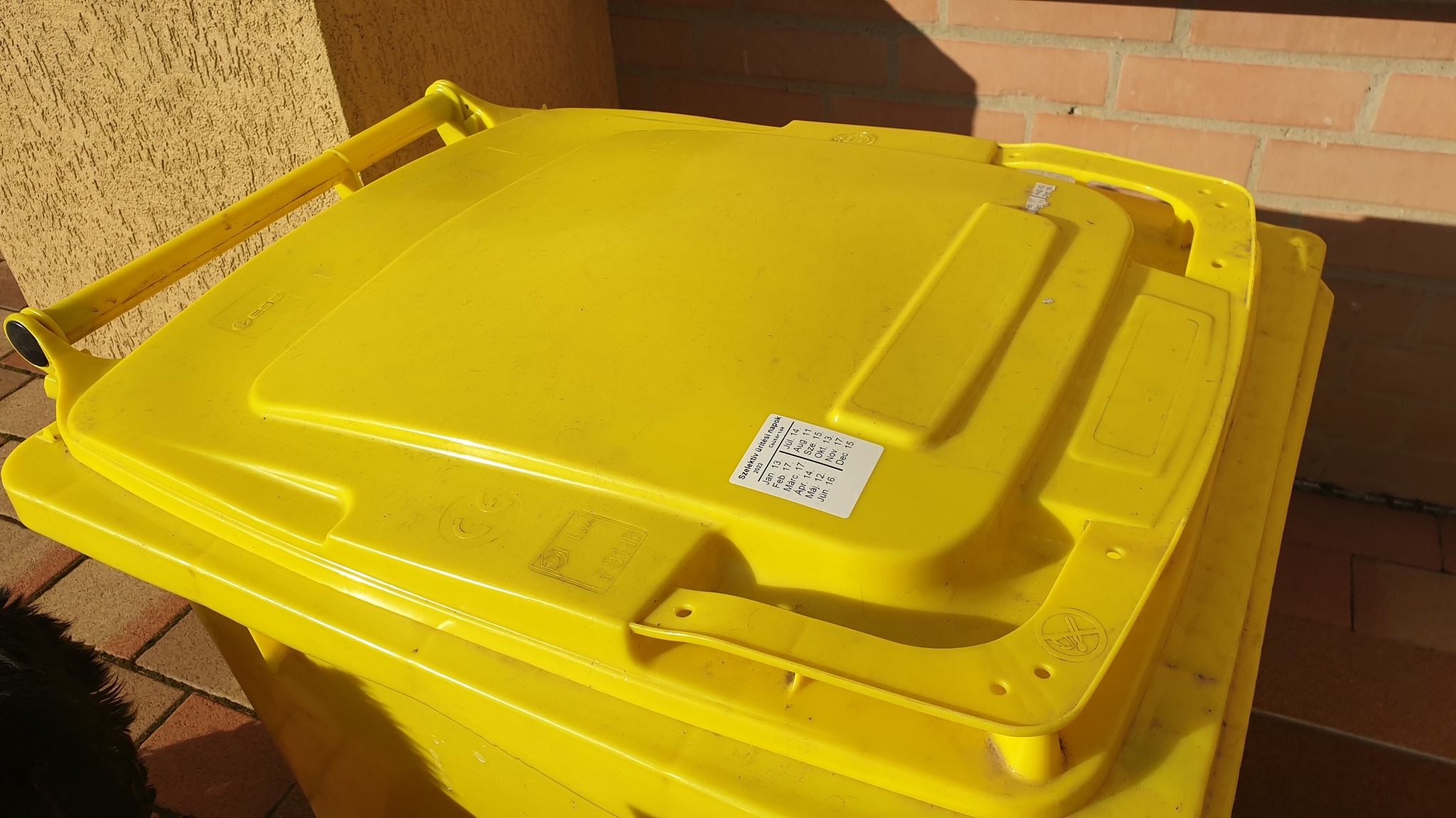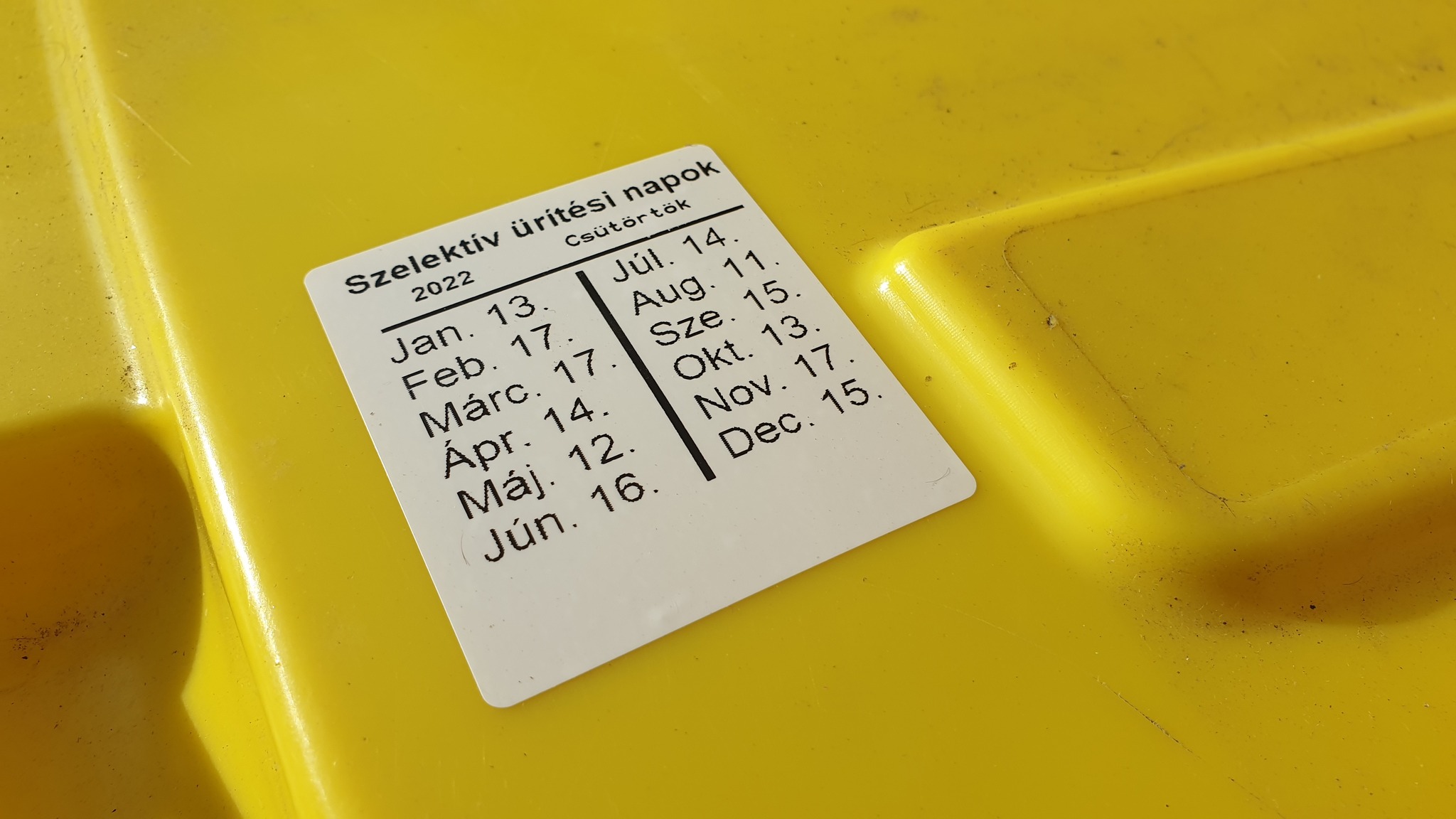 Szó se róla ötletes, praktikus és mindig szem előtt van, hogy mikor kell kitenni a sárga kukákat. A matricák címkenyomtatóval készültek, UV és minden is álló címkére! Gratulálunk az ötlethez!