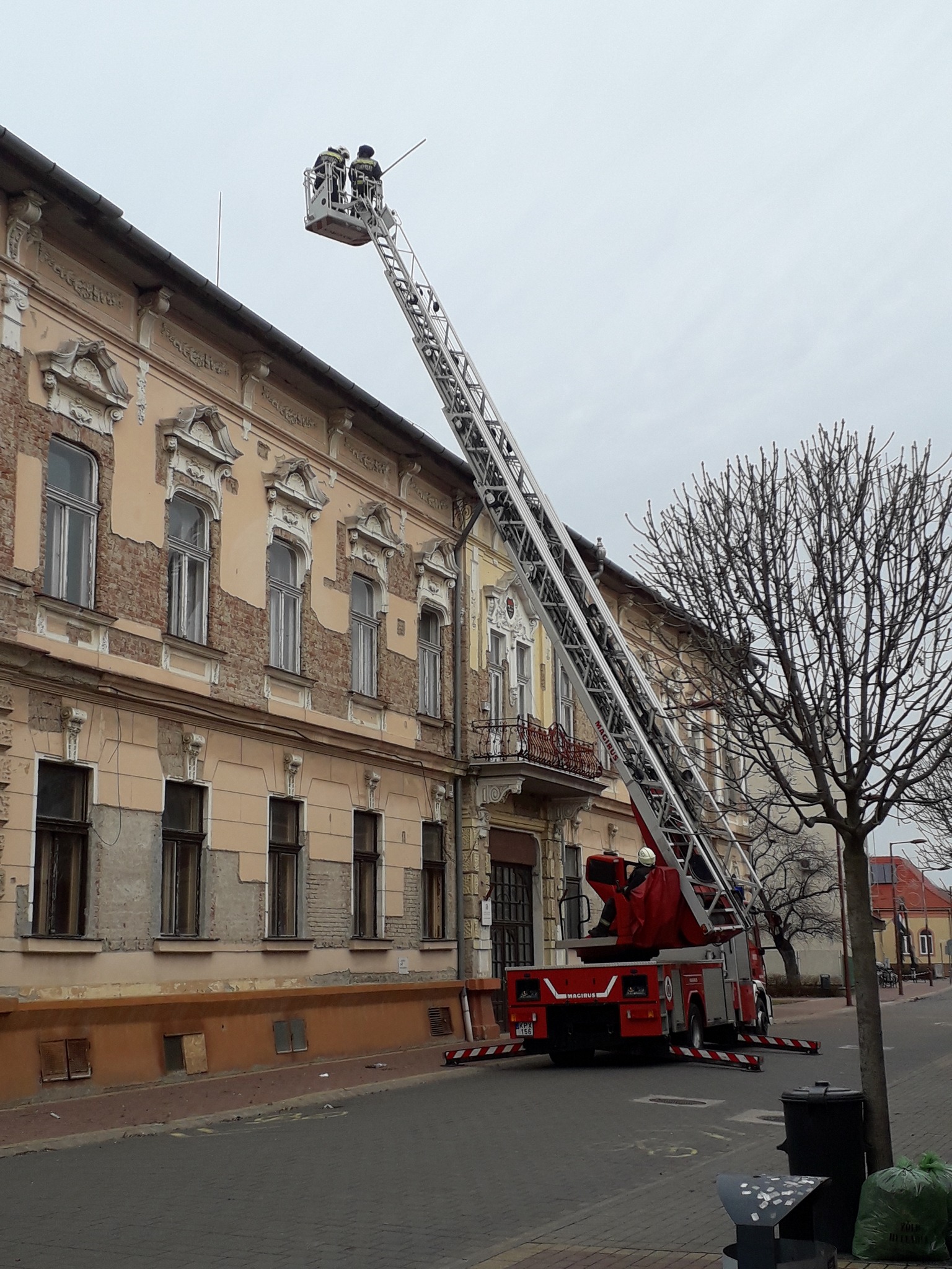 Az Ady Endre utcai volt Tiszti Klub épületének tetejéről is lesodorta a cserepeket a szél, az utca ezen szakaszát még tegnap délután lezárták a forgalom elől a balesetveszély miatt. A tűzoltók ma délelőtt állítják helyre a károkat az épületen.