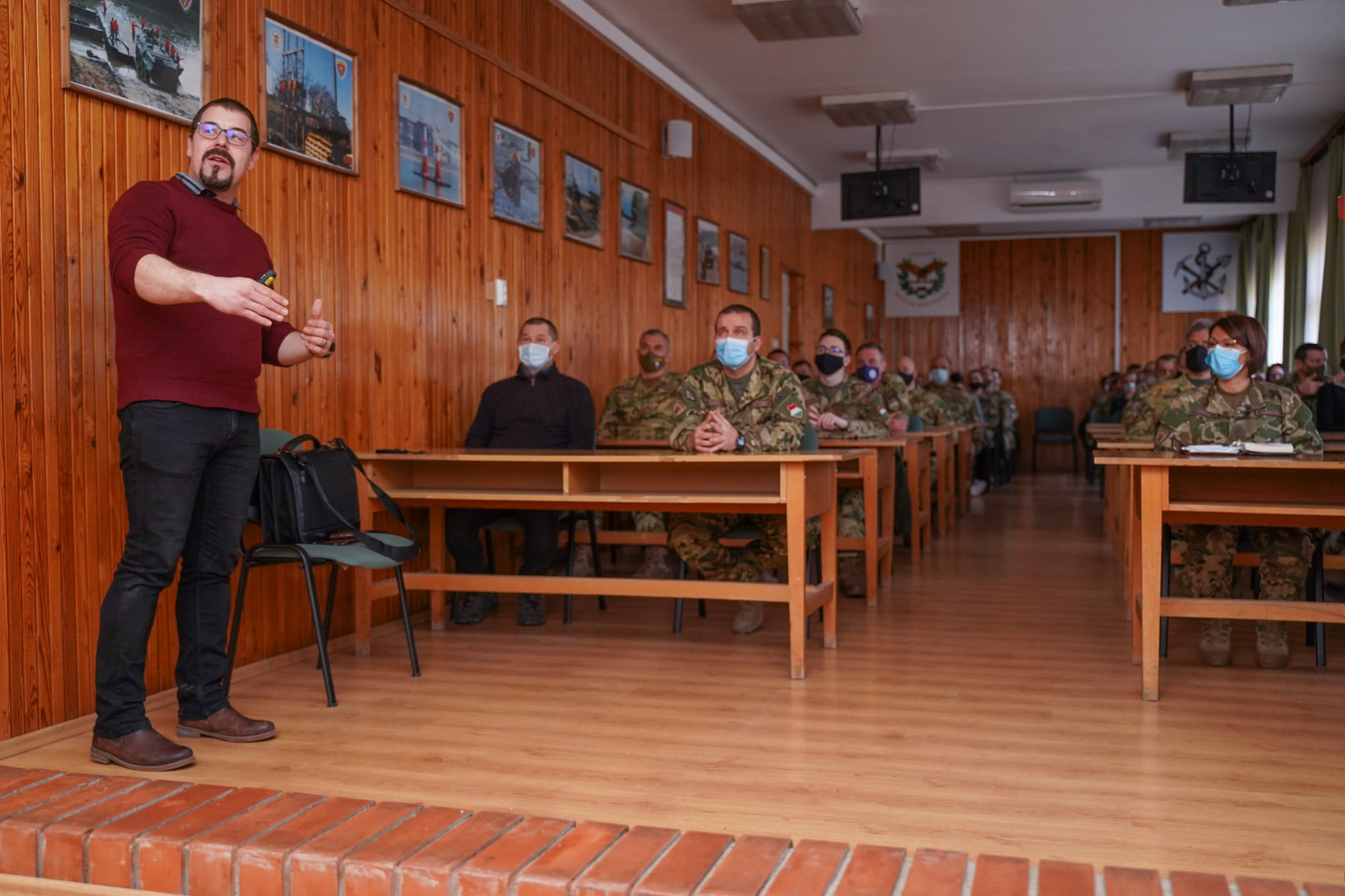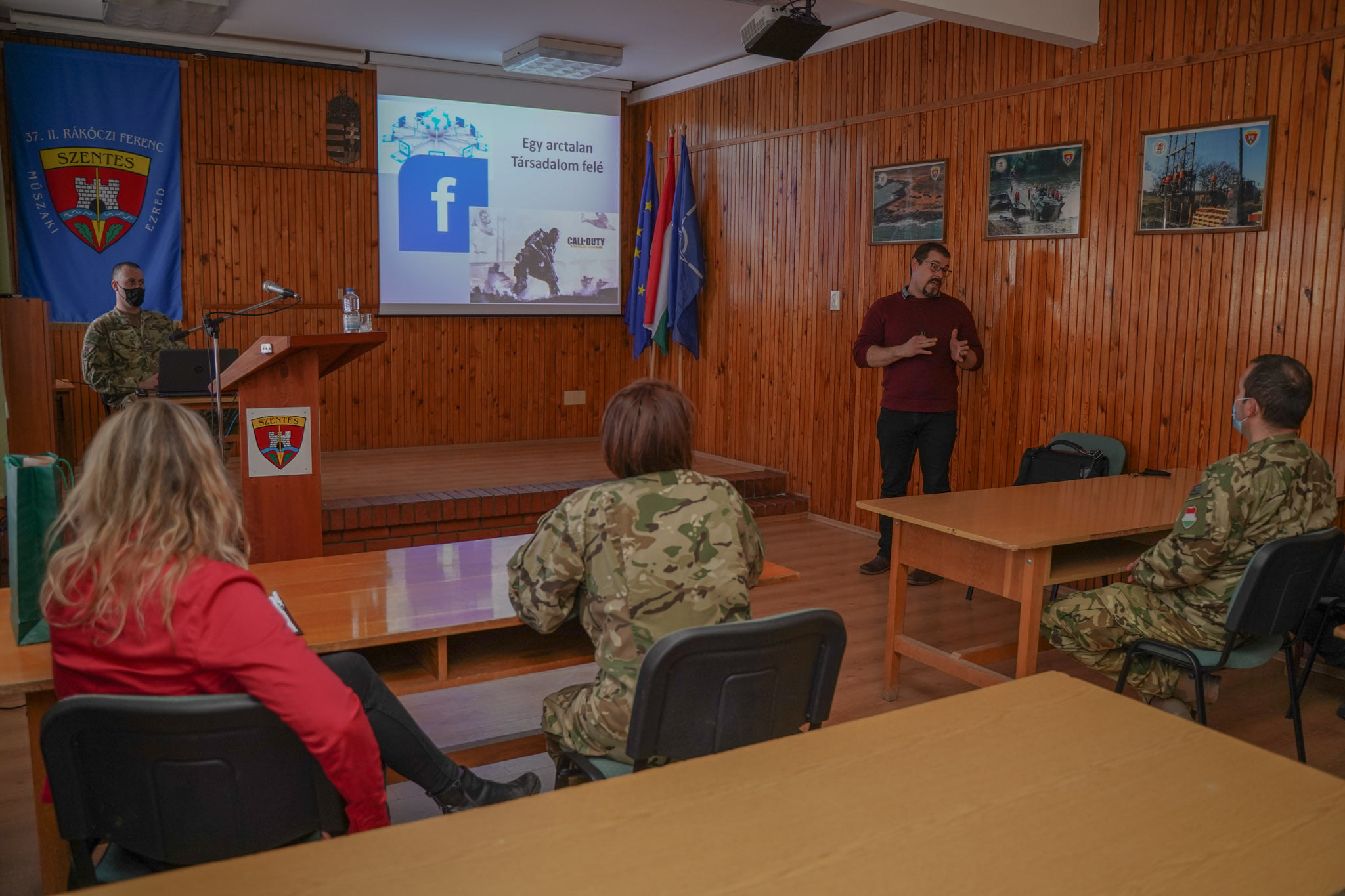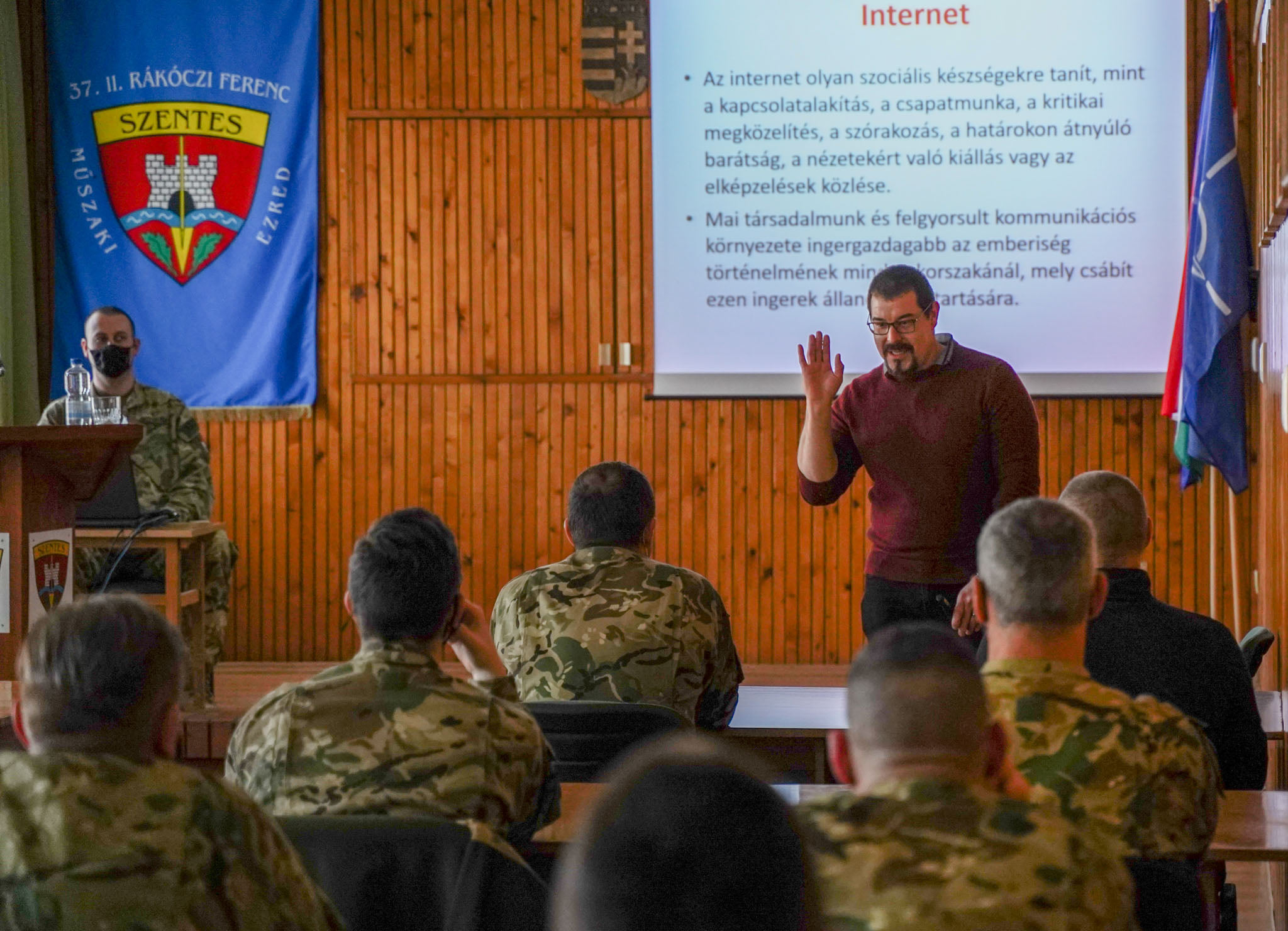 „Egy arctalan társadalom felé”-internet és számítógép függőség címmel tartott előadást Rácz István őrnagy, a Tábori Lelkészi Szolgálat Katolikus Tábori Püspökség tábori lelkésze.