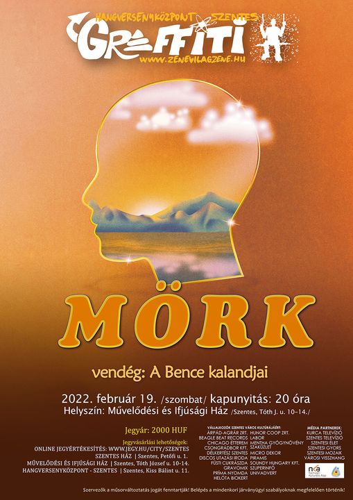 A szentesi Hangversenyközpont Zene-Világ-Zene Graffiti sorozatának februári előadásán a Fonogram és Artisjus-díjas, több neves nemzetközi fesztivált megjárt fővárosi zenekar MÖRK ad koncertet a Művelődési és Ifjúsági Házban. Az est vendége a Jobbágy Bence vezette A Bence kalandjai.