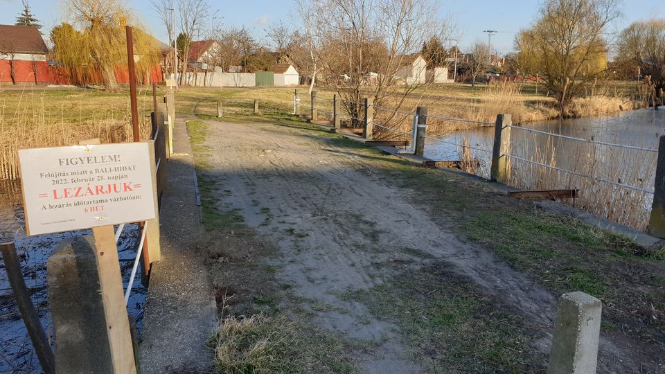 A Szentes Városellátó Nkft. felhívja a gyalogos és kerékpáros közlekedők figyelmét, hogy a kertvárosi „Bali” Kurca-hidat járdaépítés és hídfelújítás miatt 2022.