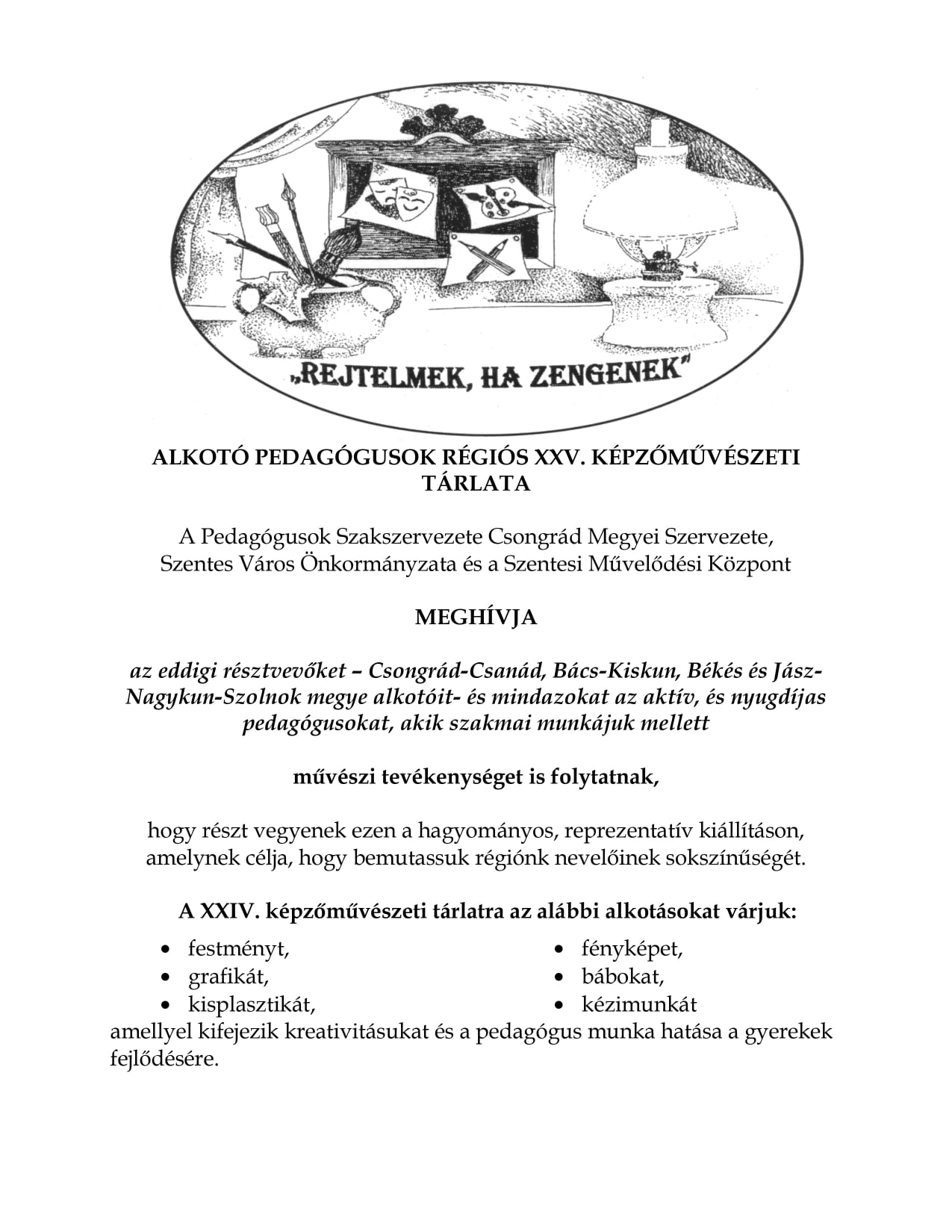 Az Alkotó Pedagógusok Tárlatának pályázati kiírása. Minden Alkotónak sikeres mun…