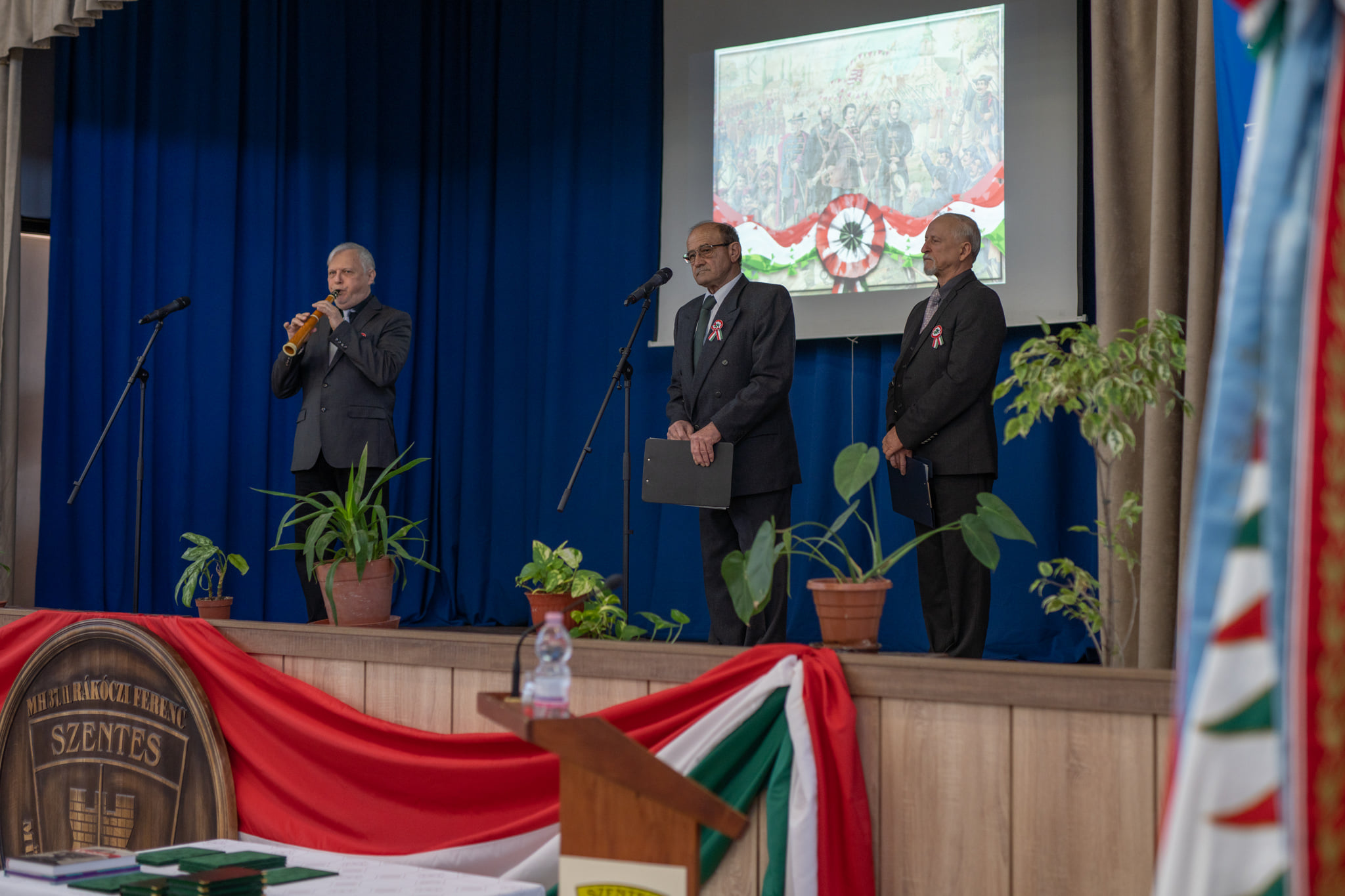 Ünnepi beszédében Tánczos Roland, a Szentesi Levéltár igazgatója felidézte az 1848-as eseményeket Szentes és környező települések vonatkozásában. A rendezvény színvonalát a Csongrádi Faludy György Irodalmi Műhely műsora emelte, amelyben Csák László török síppal adott elő dalokat, valamint Góg János, Juhász Gyula-díjas költő, egyben az Irodalmi Műhely vezetője és Bartók Lajos, a Csongrádi Csűr-Broadway Színpad tagja szavalták el híres magyar költők verseit.