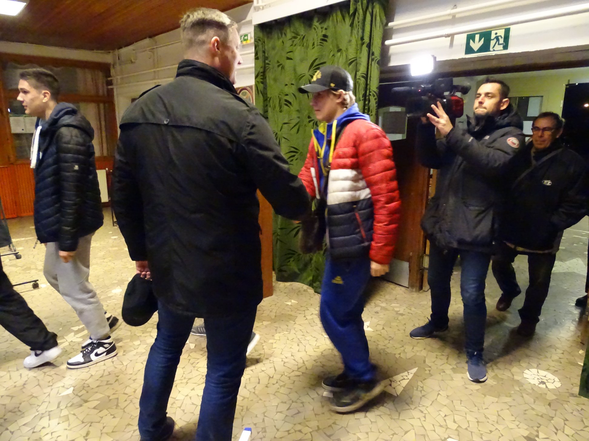 A háború elől menekülő sportolókat a Keller Lajos Művelődési Központban fogadta Zsótér Károly, Mindszent polgármestere, Vári Attila, a Magyar Vízilabda-szövetség elnöke és Gáll Péter, a szövetség főtitkára.