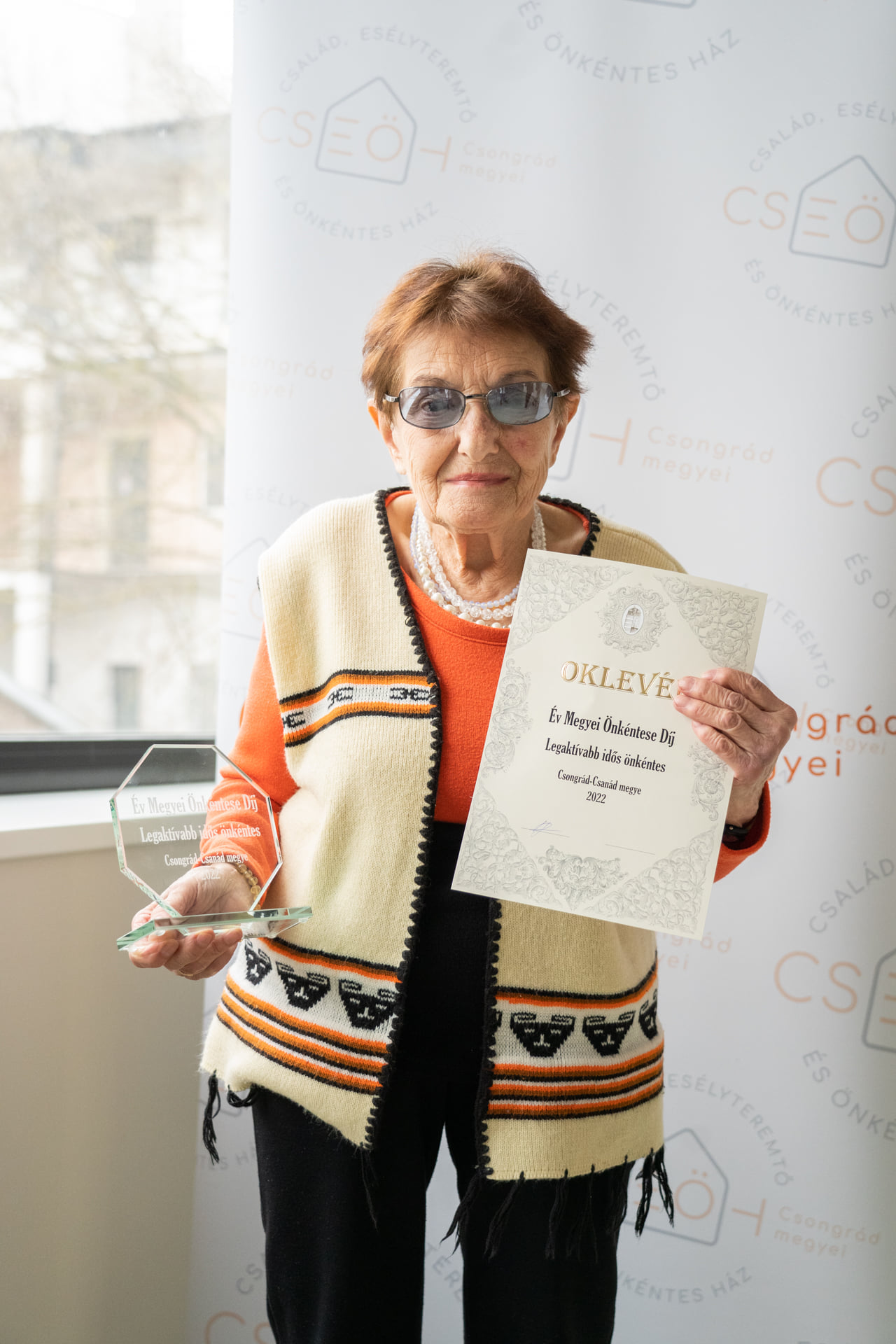 Szentes Város Gondozási Központ Horváth Mihály utcai I-es számú idősek klubjának egyik tagja Vas Gyula Andrásné Piroska néni a Csongrád megyei Család, Esélyteremtési és Önkéntes Ház (CSEÖH) által meghirdetett az Év Megyei Önkéntese díj – e kategóriában nyert díjat. Gratulálunk!
