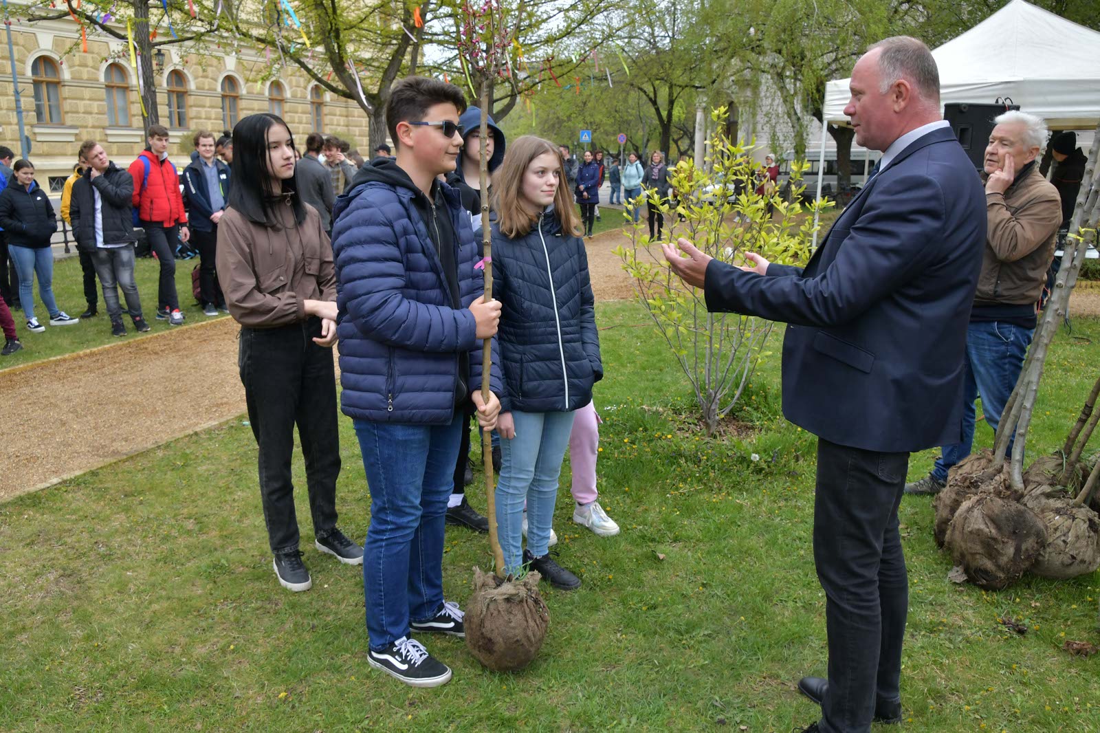 Szabó Zoltán Ferenc polgármester köszöntője után a végzős általános és középiskolás osztályok egy-egy facsemetét kaptak, valamint a város Facebook oldalán közzétett leggyorsabb ötven lájkoló nevét olvasták fel. Ők négy négyzetméterre való virágmagot kaptak Agócs Lászlóné felajánlásából, amely később, mint méhlegelő is funkcionálhat.
