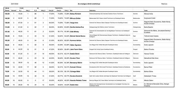 Baksa Richárd osztályfőnöke Fekete Nagy Gábor, felkészítő pedagógusok: Csetfalvi Enikő Pálma, Mácsai Anita.