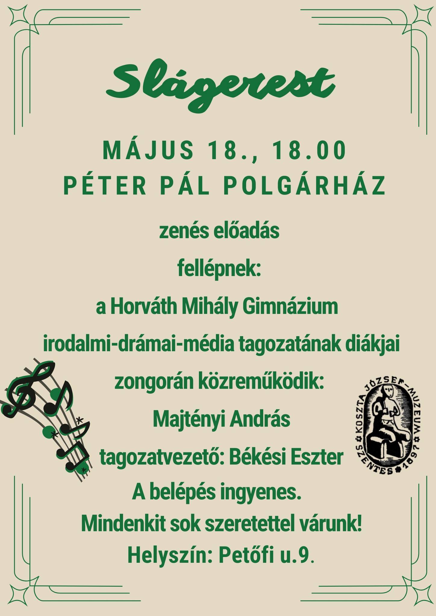 helyszín: Péter Pál Polgárház, Petőfi u. 9.