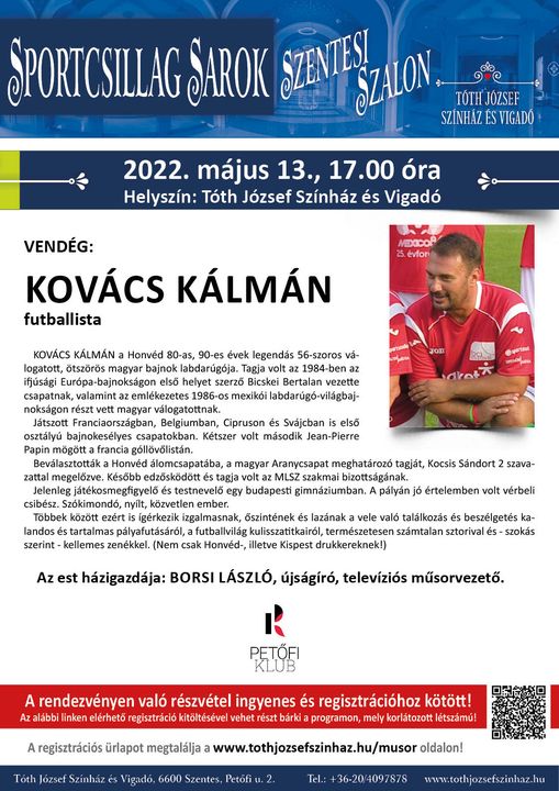 A rendezvény díjmentes, csupán regisztráció szükséges, melyet megtehet online a https://www.tothjozsefszinhaz.hu/musor/ oldalon vagy személyesen jegyirodánkban.