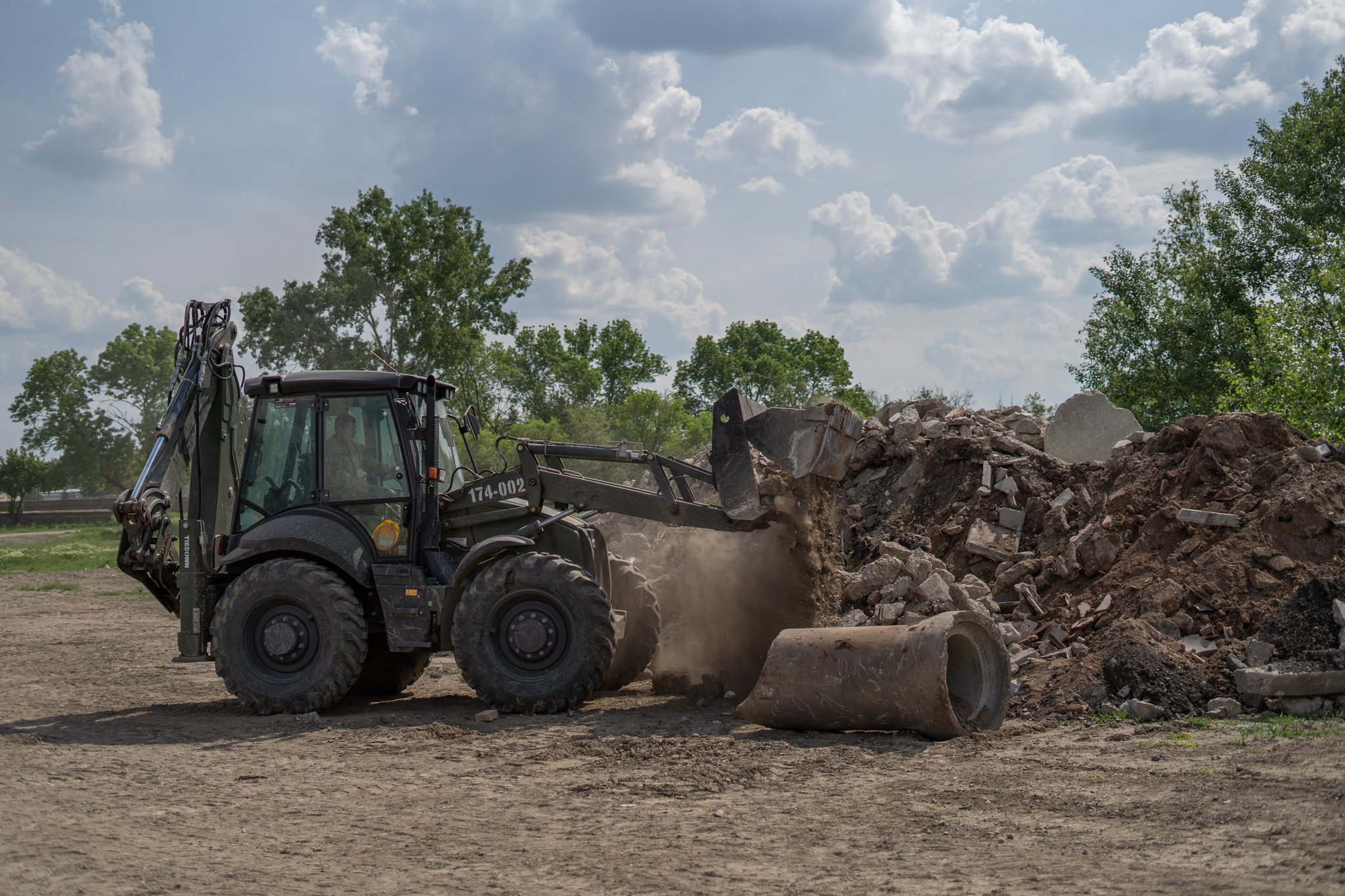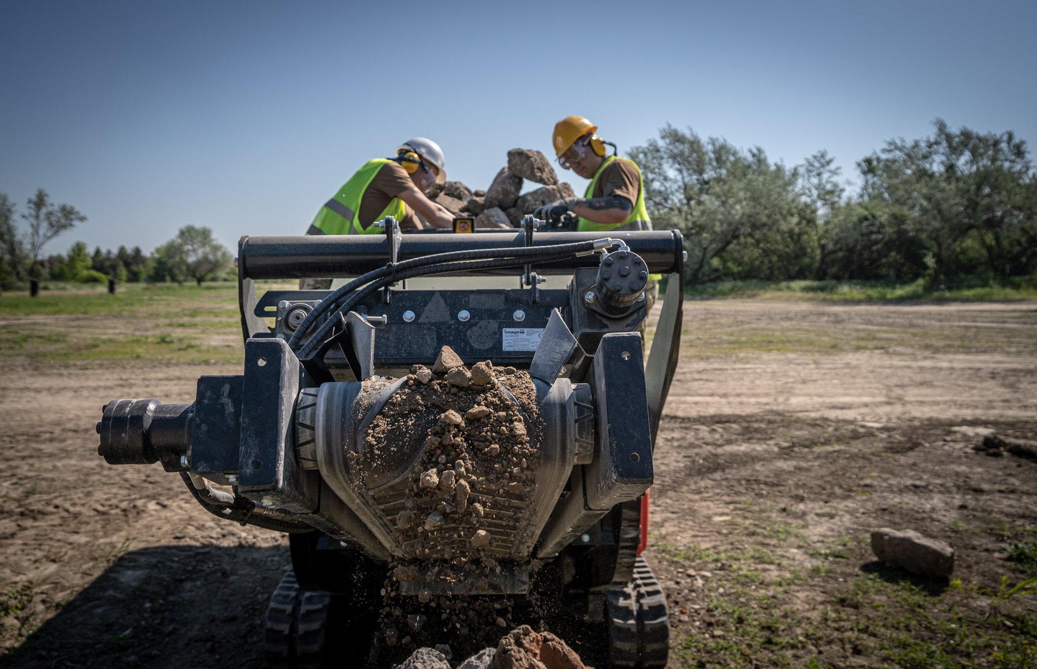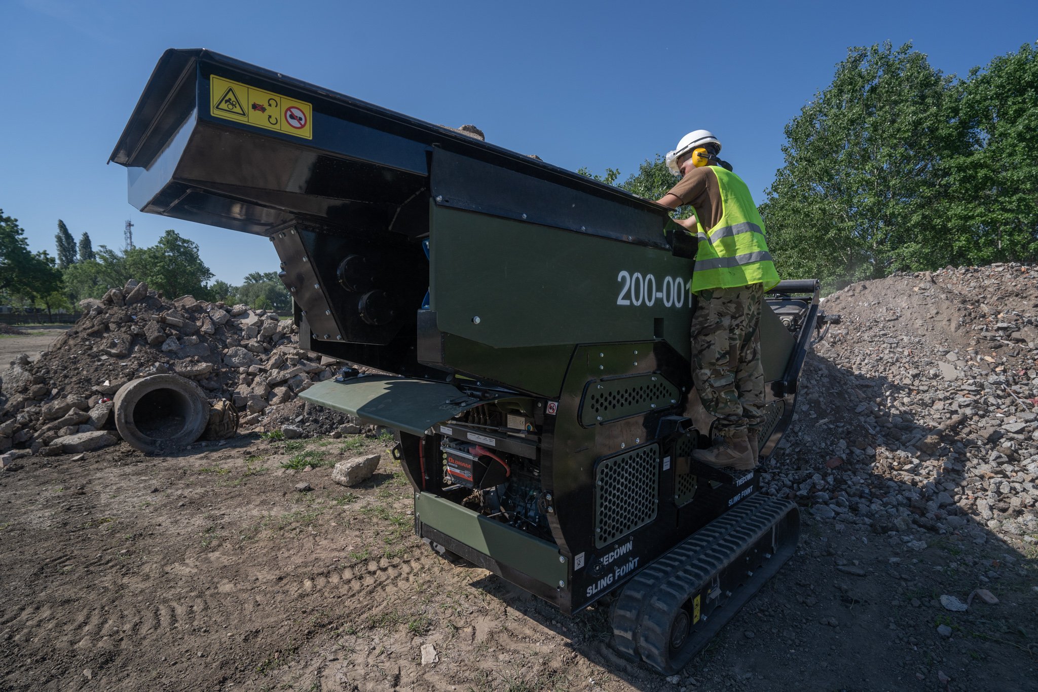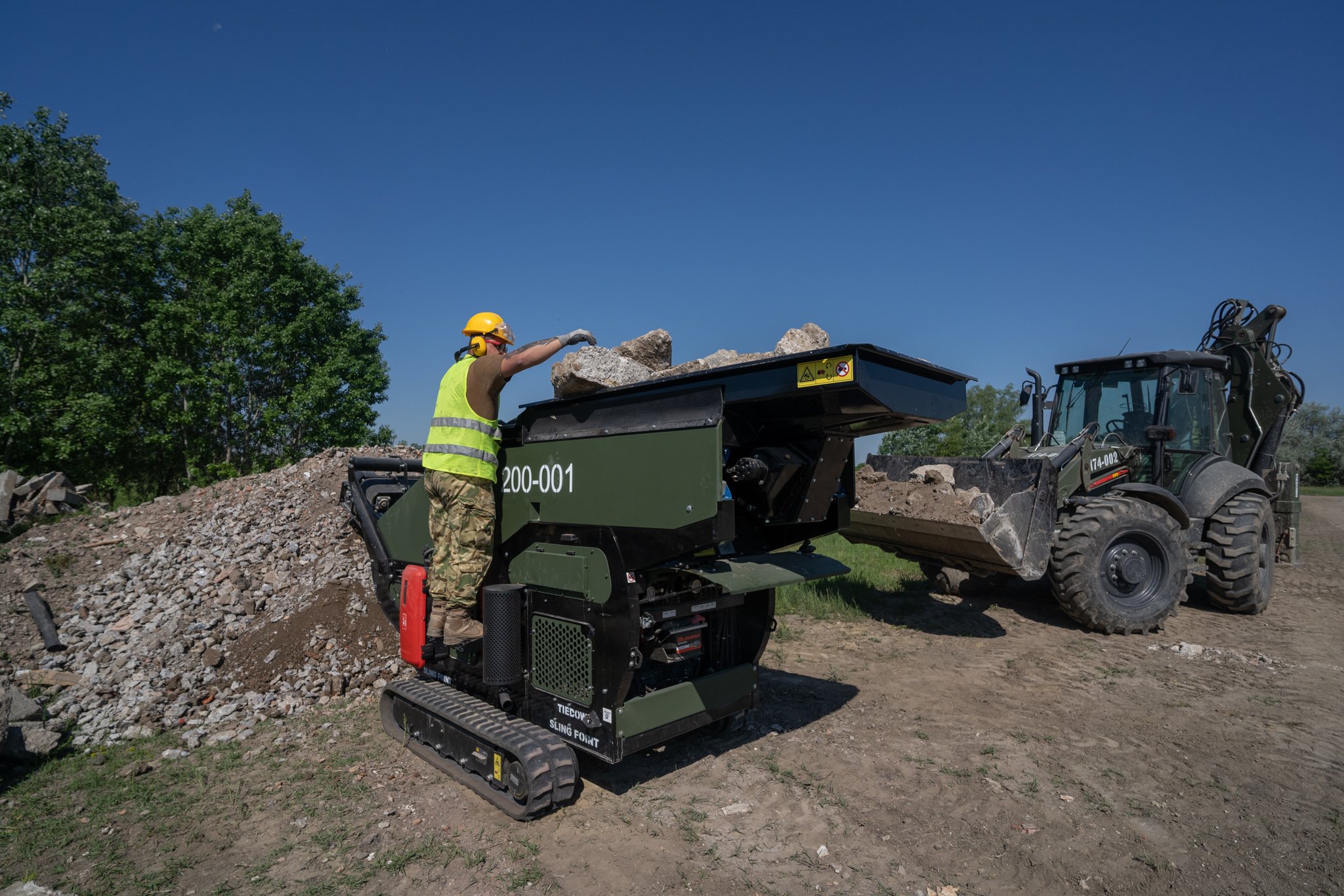 A hétköznapi életben mindenki szépíti, újítja háza táját. Nincs ezzel másképp alakulatunk sem. A laktanya felújítási munkák folyamatosak a műszaki ezrednél. Ezen munkálatok során felhalmozódott betonnal, kőtörmelékkel pedig valamit kezdeni kell. Vagy elszállítjuk, vagy újrahasznosítjuk. Az utóbbi meg is oldható alakulatnál, mert rendelkezünk egy Red Rhino 5000 plus kőzúzó géppel, amely hernyótalpas fotóművel, adagoló garattal, állítható hidraulikus zúzópofákkal, valamint egy lehordó szalaggal van ellátva. És mi lesz a zúzott törmelékkel? Leendő utak útalapjához fogjuk felhasználni.
