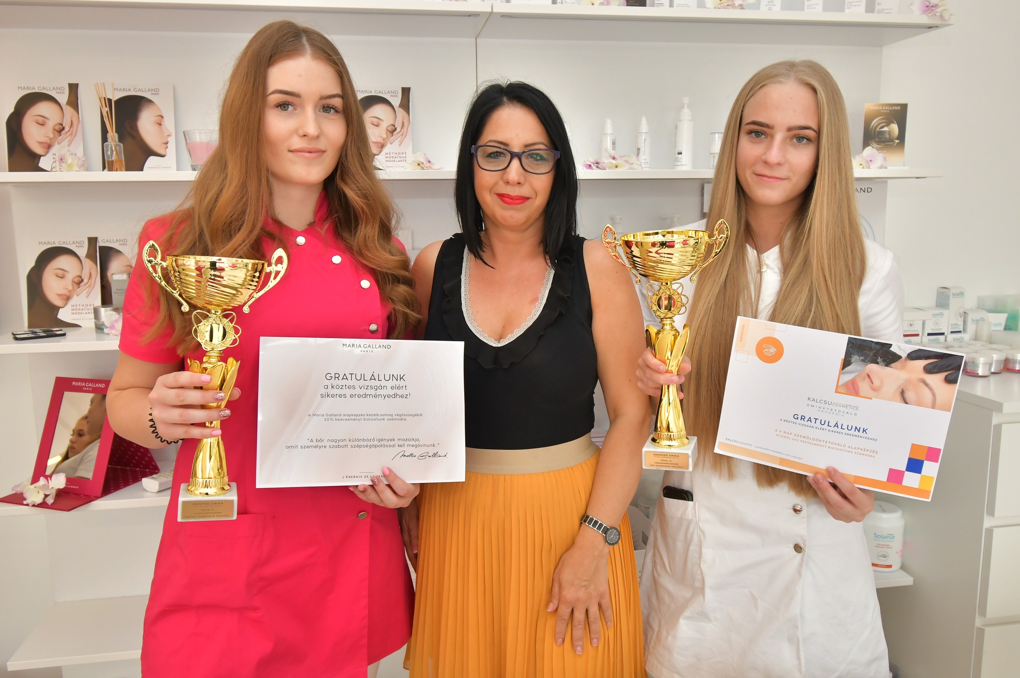 Aliz a Maria Galland alapképzés kezdőcsomagjából, Zsófi pedig a KALCSU Cosmetic sminktetováló akadémia képzéséből 20%-os kedvezmény utalványt vehetett át.