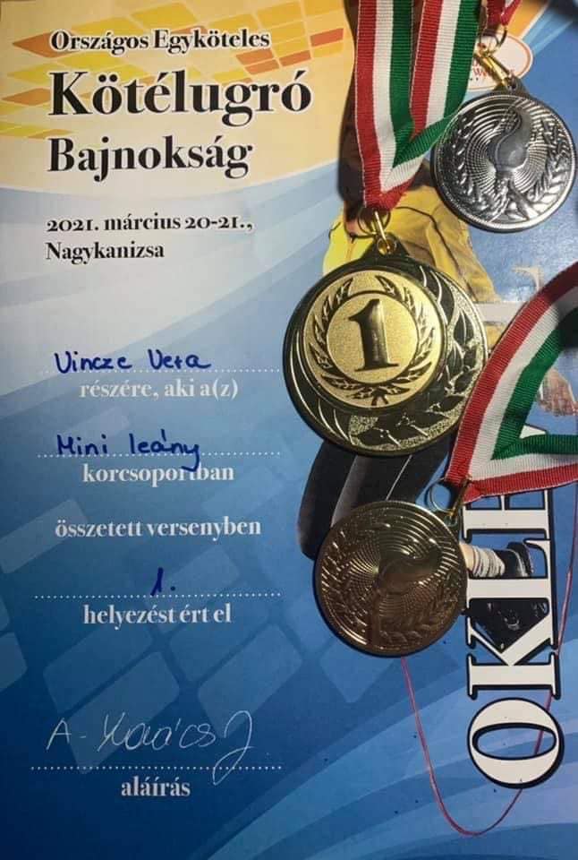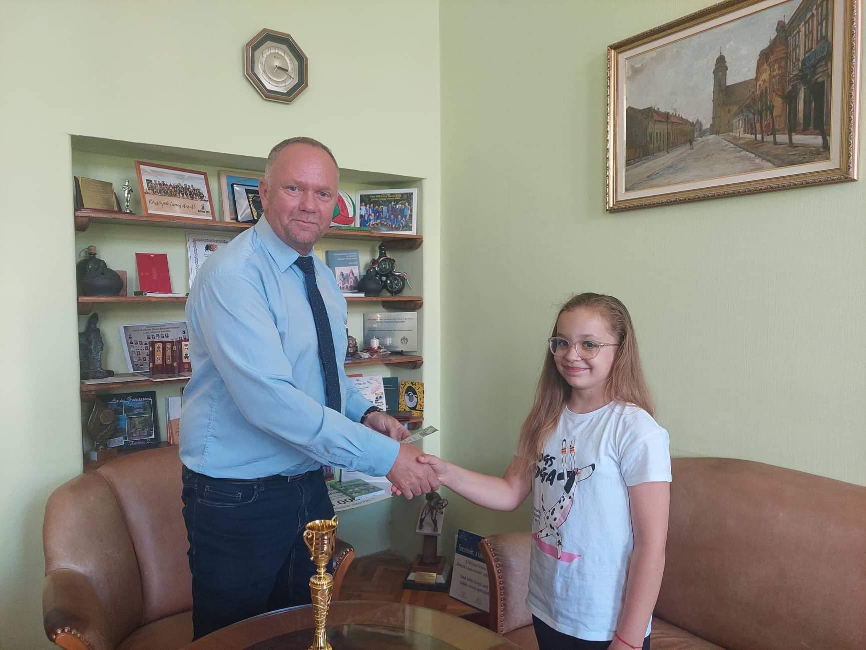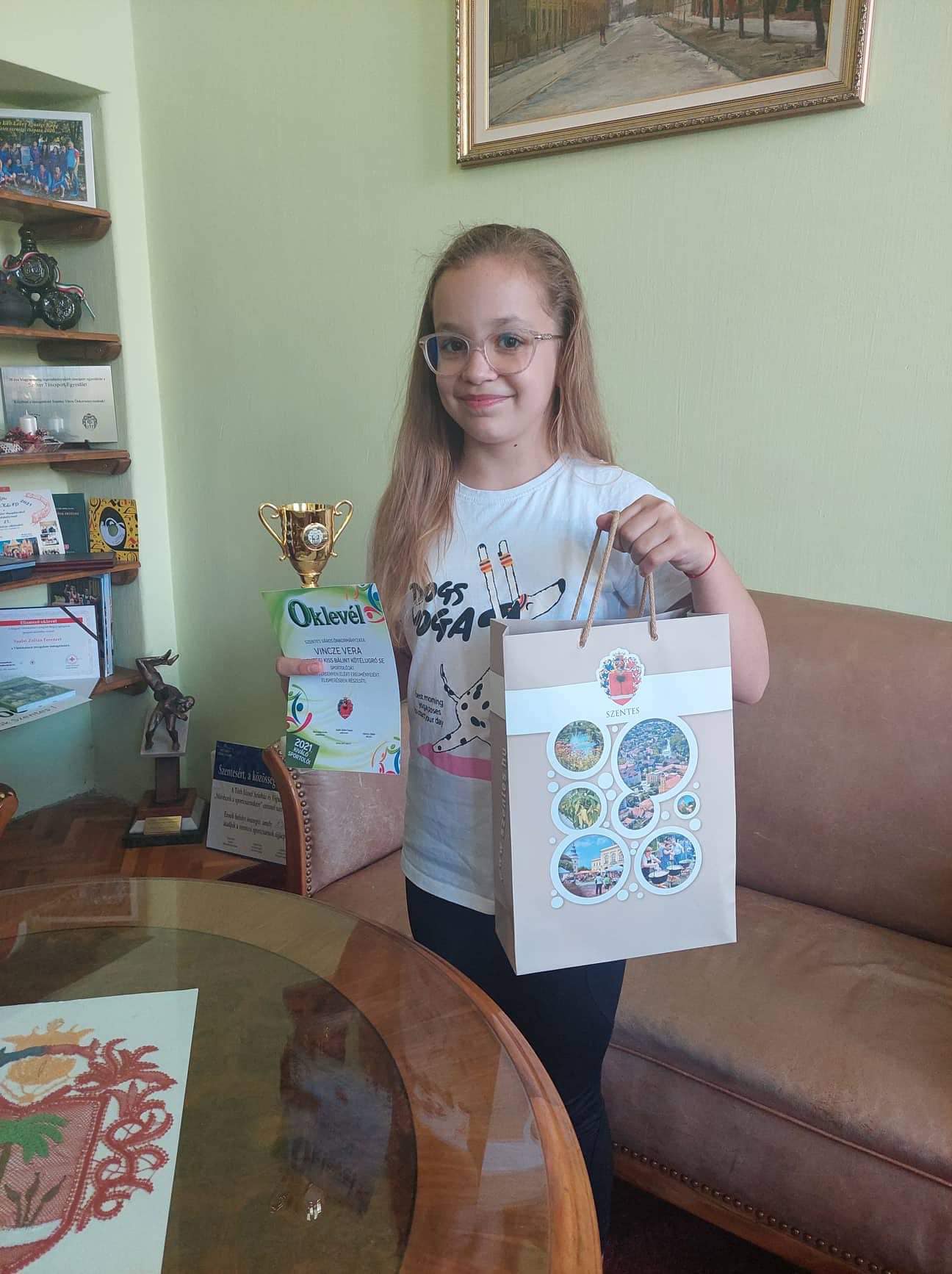 Vincze Vera, aki a Kiss Bálint Kötélugró SE sportolója adminisztratív hiba miatt múlt heti sportolói díjátadó ünnepségen nem tudta átvenni elismerését. A mai napon Szabó Zoltán Ferenc polgármester úr átadta neki méltó elismerését.