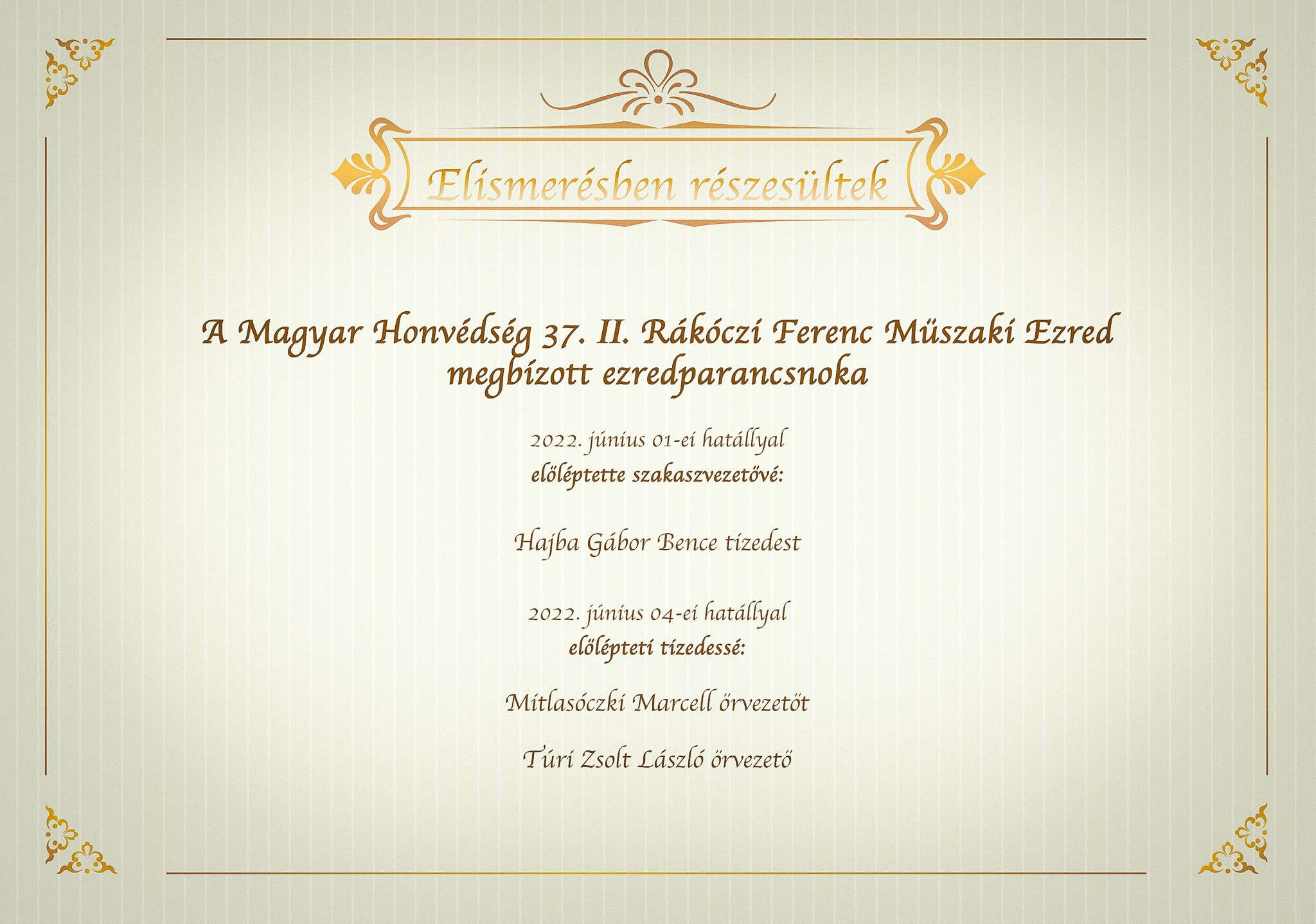 Kezdőlap MH 37. II. Rákóczi Ferenc Műszaki Ezred A heti vezetői értekezlet előléptetésekkel kezdődött. Az érintett munkatársainkn…