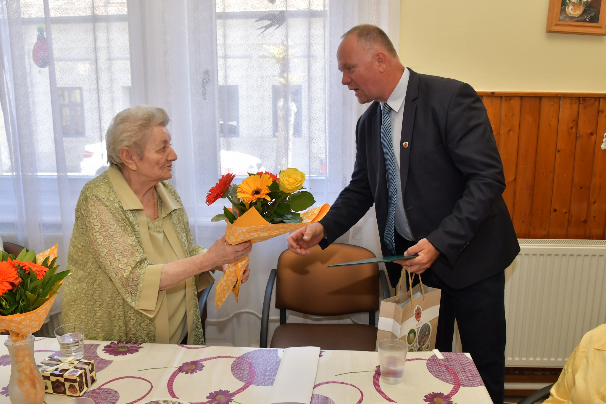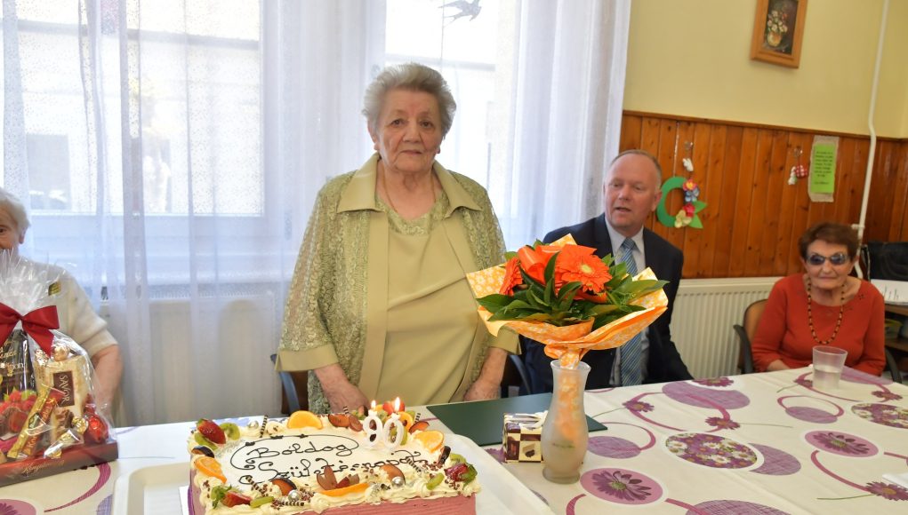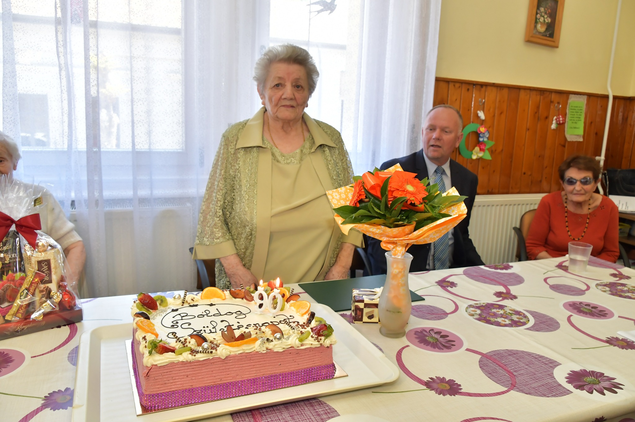 Csáki Annát köszöntötte 90. születésnapja alkalmából Szabó Zoltán Ferenc polgármester június 3-án, a gondozási központban. A klub tagjai kis műsorral, verssel, énekkel