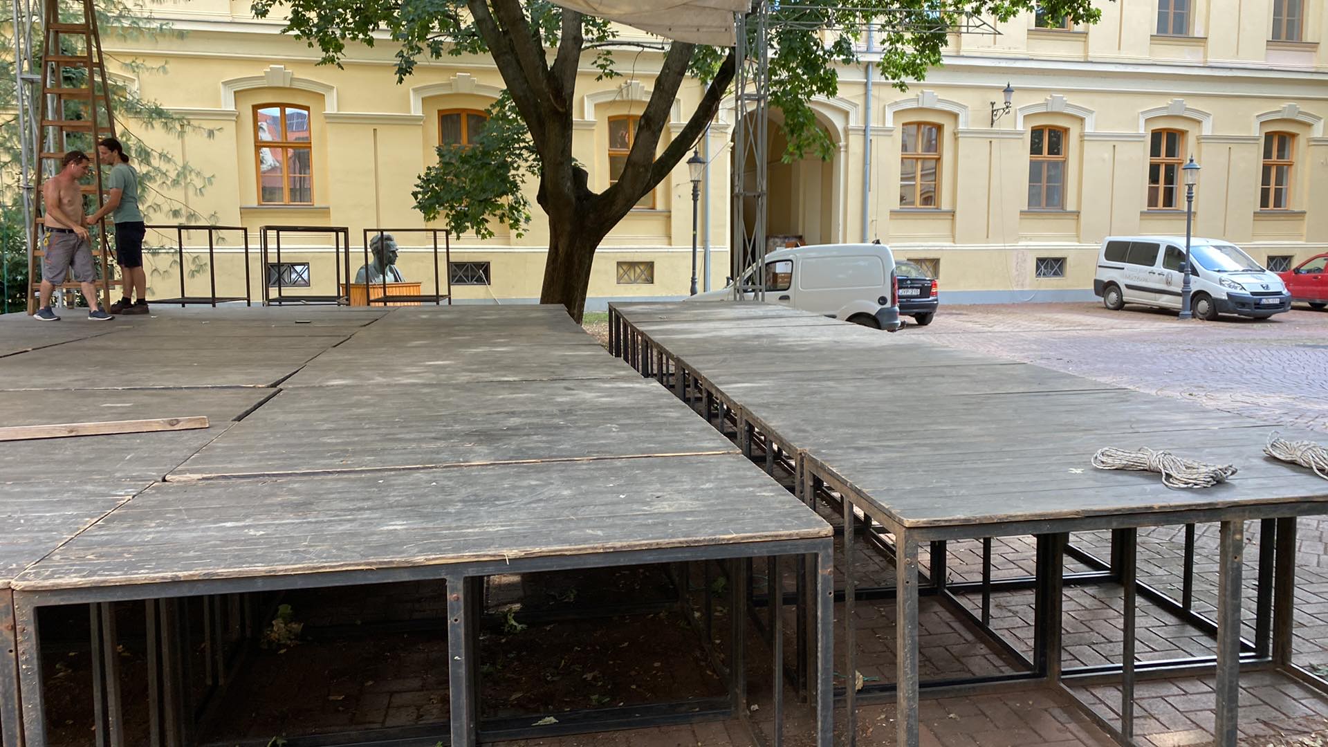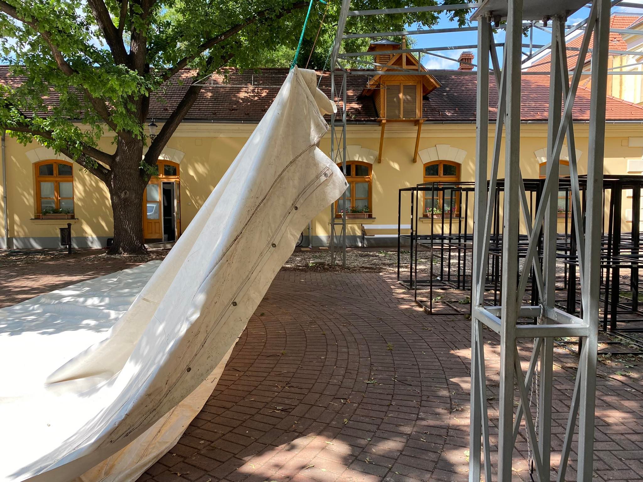Kezdőlap Kultúra és szórakozás Szentesi Művelődési Központ A Megyeháza KKK udvarán már készül a szabadtéri színpad!…