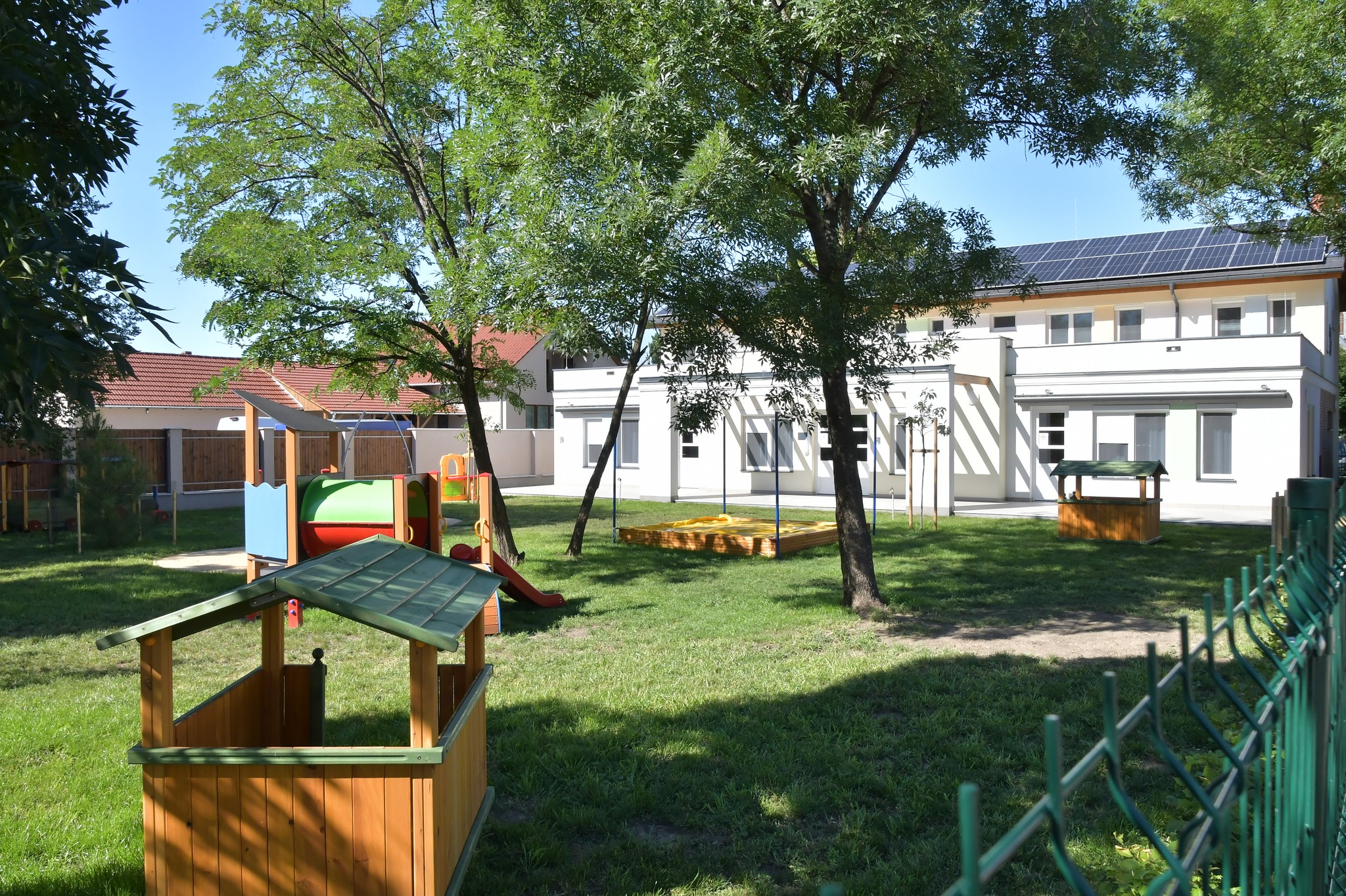 A 3 csoportszobával és a kapcsolódó helyiségekkel, kert kialakításával tervezett új épületet a szentelés után megtekinthették a résztvevők, és már az első bölcsődés is meglátogatta azt.