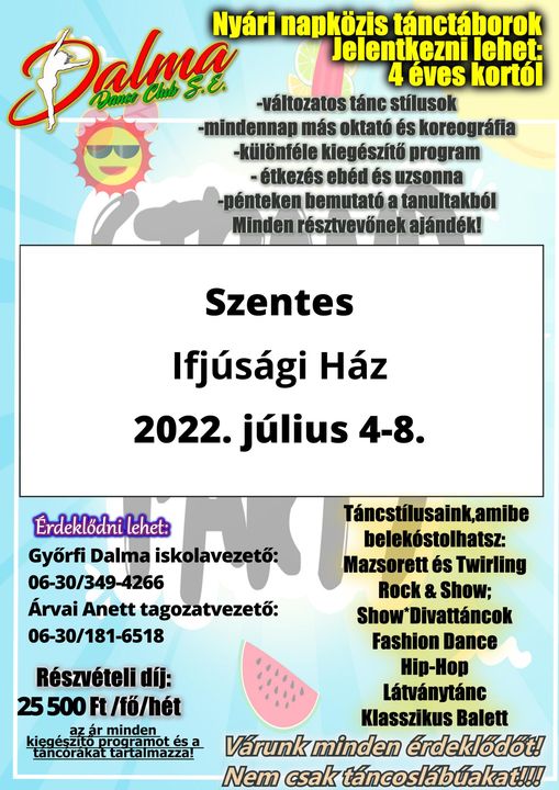 Kezdőlap Kultúra és szórakozás Szentesi Művelődési Központ Dalma Dance Tábor a Művelődési és Ifjúsági Házban!!!!!!!!!…