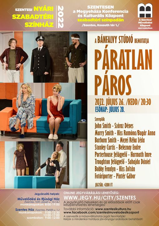 Kezdőlap Kultúra és szórakozás Szentesi Művelődési Központ Páratlan Páros – A Bánfalvy Stúdió előadása…