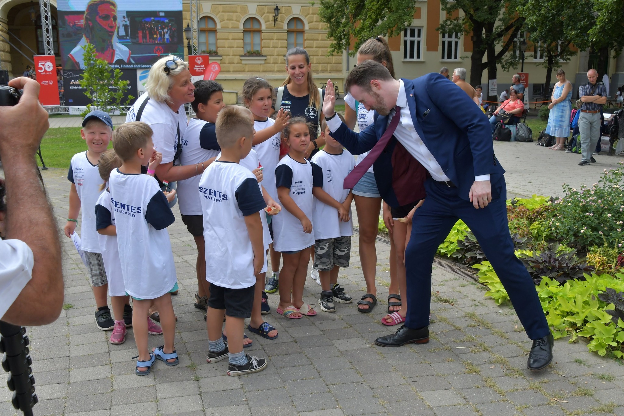 🤝 Nagy sikerű táborunk negyedik csoportja az utolsó napon meglátogatta a Speciális Olimpia eseményét Szentesen, amelyen Jonas Stewarttal, az 🇺🇸 Amerikai Egyesült Államok megbízott misszióvezető-helyettesével találkoztak a gyerekek.