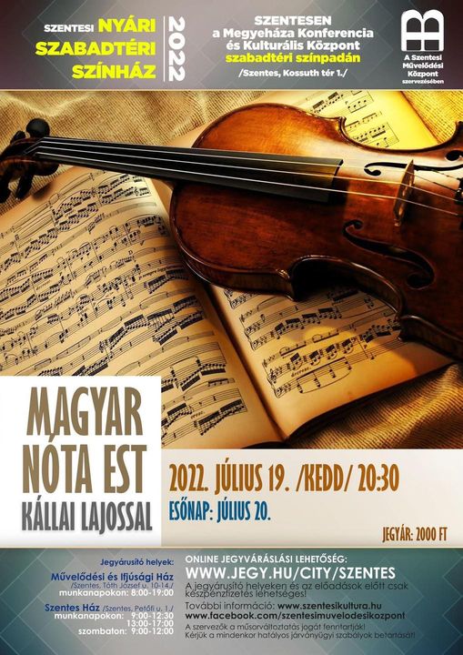Kezdőlap Kultúra és szórakozás Szentesi Művelődési Központ Ma este Magyar Nóta Est Kállai Lajossal!…