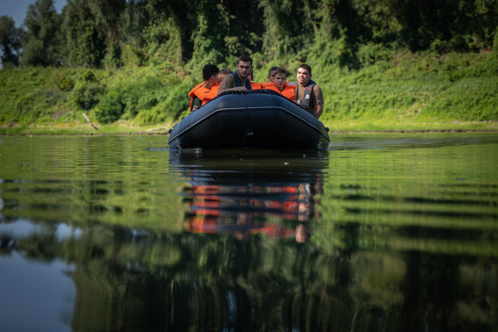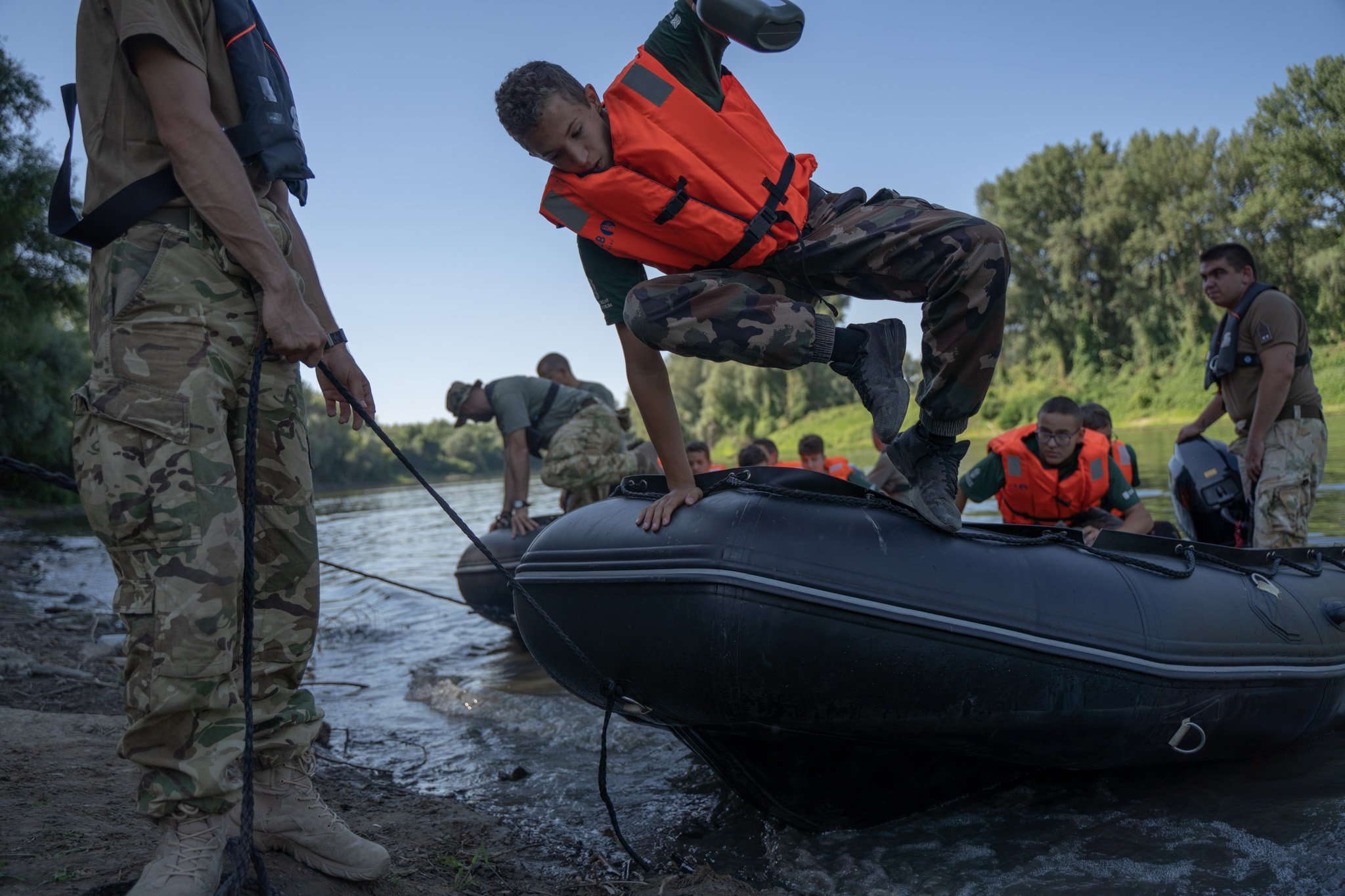 A táborlakók a reggelit követően elhagyták a laktanyát és a Tisza felé vették az irányt, ahol egész nap különböző feladatokban volt részük a folyóban, a folyó felszínén és a parton. A fiatalok először gumicsónakon utazva csodálhatták a folyó itt-ott igazán vadregényes partjait, majd PTSZ-M közepes lánctalpas úszógépkocsira szálltak és egy élményutazáson vettek részt. A táborozók a délelőttöt átmozgató feladattal zárták: a part mentén úszkáltak. A természetben elfogyasztott ebéd után pedig próbálták „túlélni” a délutánt, azaz túlesési alapismeretekkel gazdagodhattak, festékkel álcázták magukat és társaikat, valamint az airsoft lövészetet is kipróbálták.