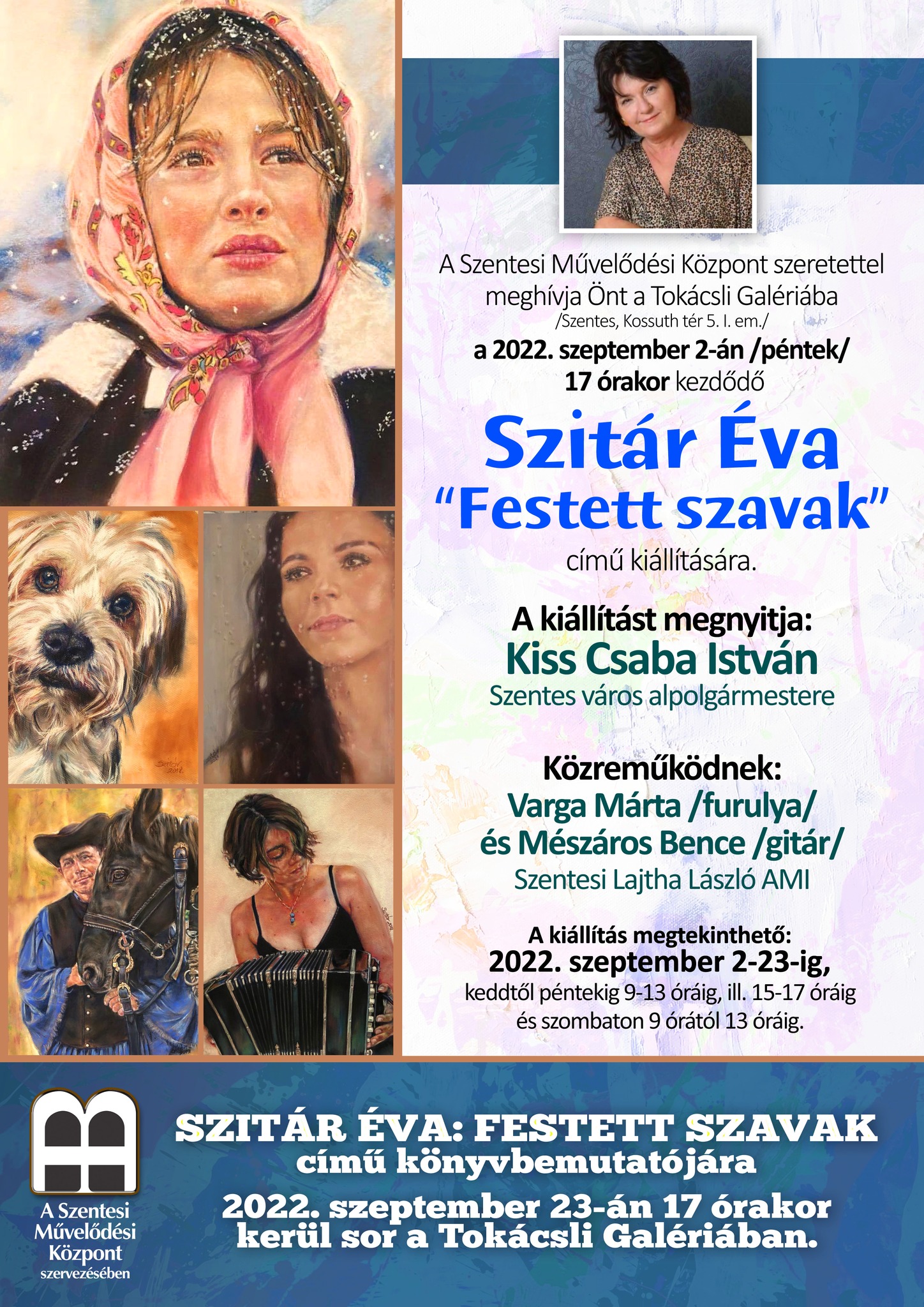 A Festett szavak című kiállítással indul az őszi évad a művelődési központ Tokácsli Galériájában, ahol szeptember 2-án 17 órakor egy tiszakécskei alkotó, Szitár Éva mutatkozik be színpompás festményeivel. Mint mondja, az alkotás ajándék számára, de jótékonyságból másokat is megajándékoz képeivel. Ajánlónkat lapunk 9. oldalán találják.
