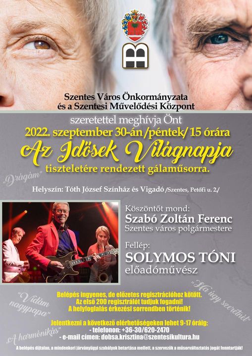 A Szentesi Művelődési Központ szeretettel meghívja Önt az Idősek Világnapja alkalmából rendezett gálaműsorra a Tóth József Színház és Vigadóba!