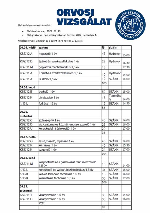  Első gyakorlati nap külső gyakorlati helyen: 2022. december 1.