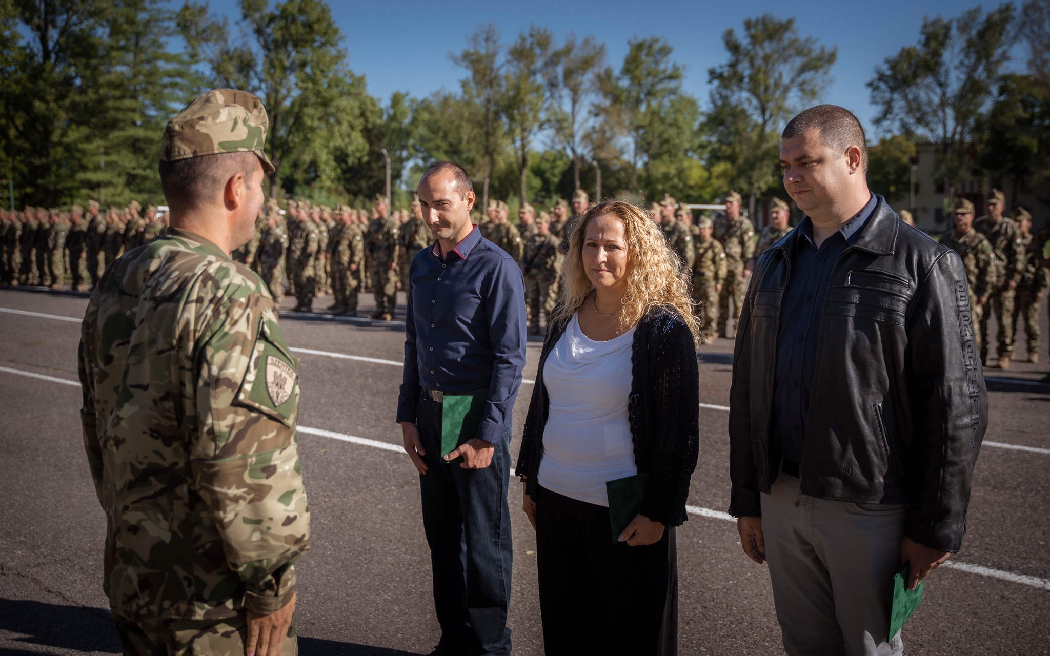 Seres József alezredes, alakulatunk megbízott parancsnoka főtanácsos, tanácsos, főmunkatárs és munkatárs címeket adományozott honvédelmi alkalmazott kollégáinknak munkájuk elismeréseként.