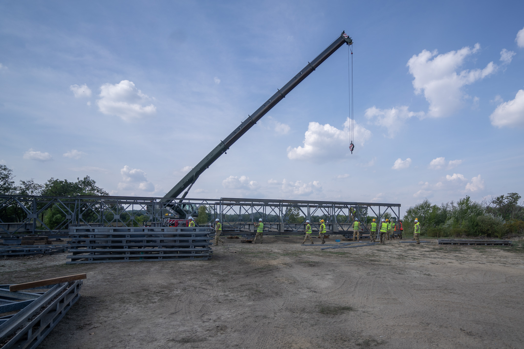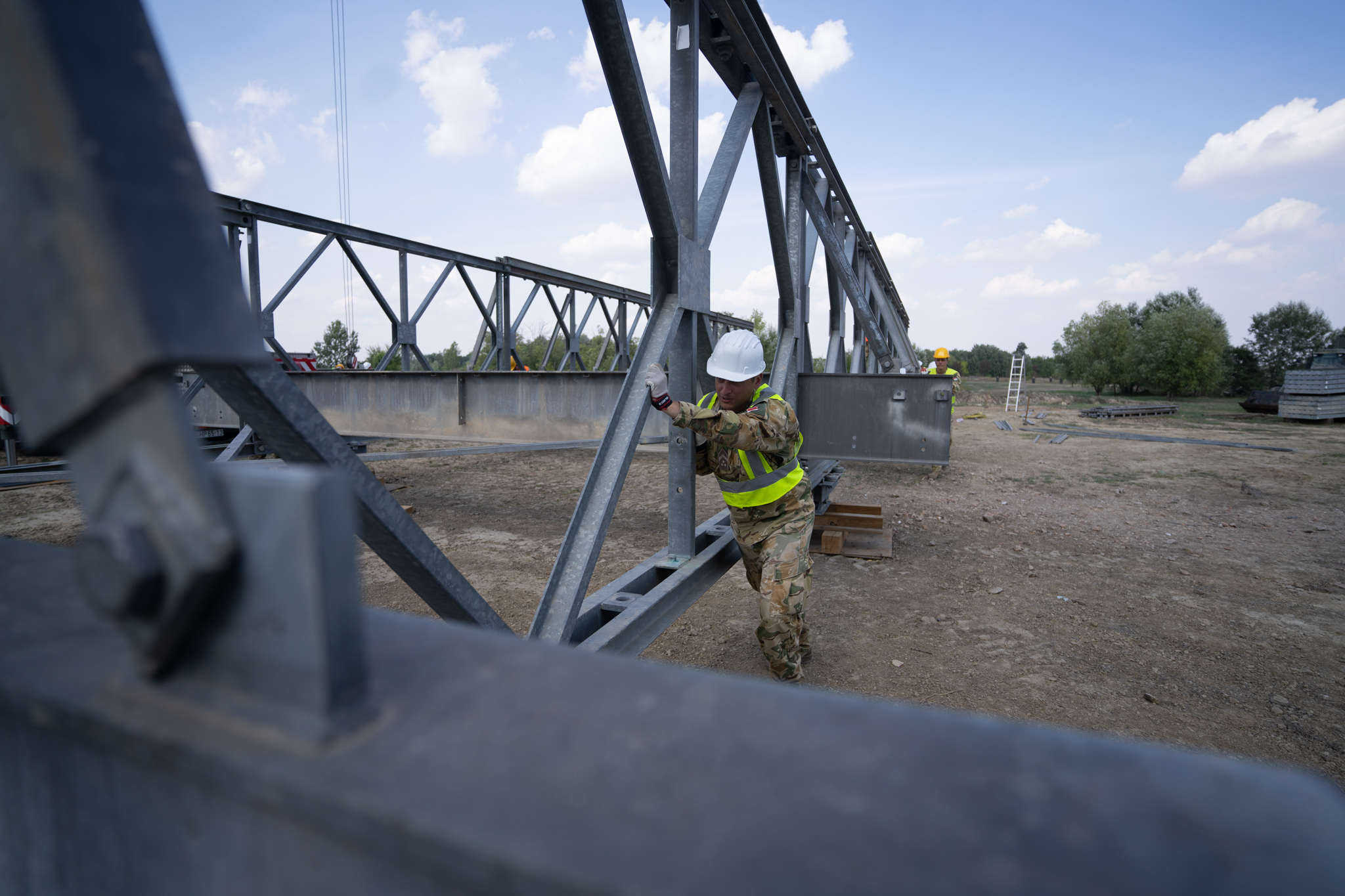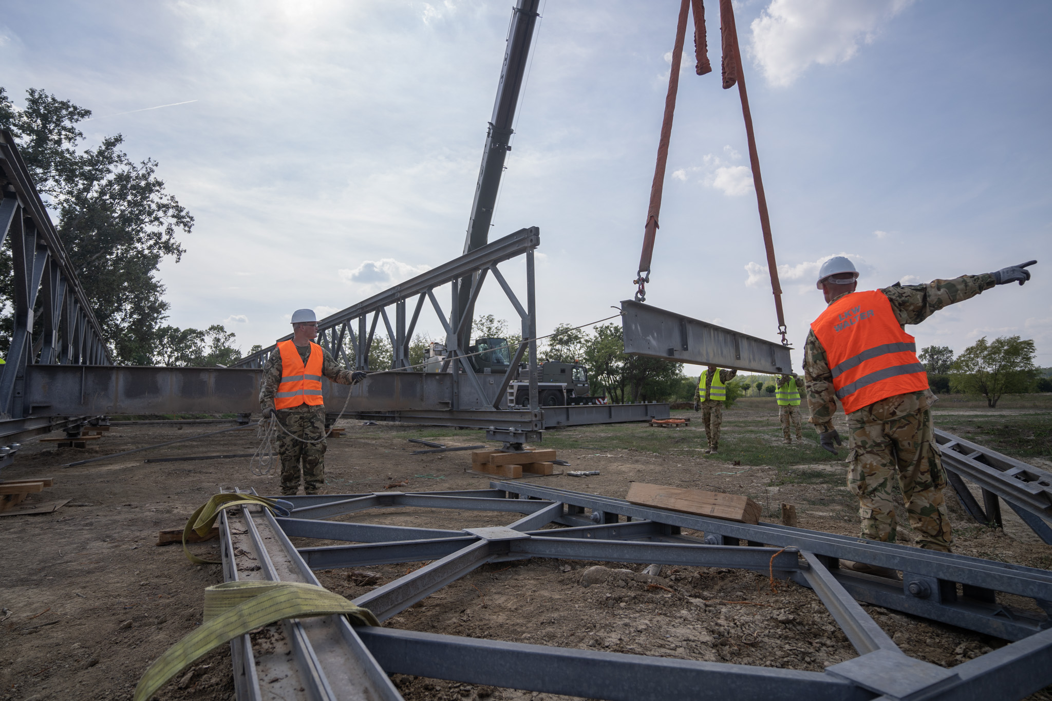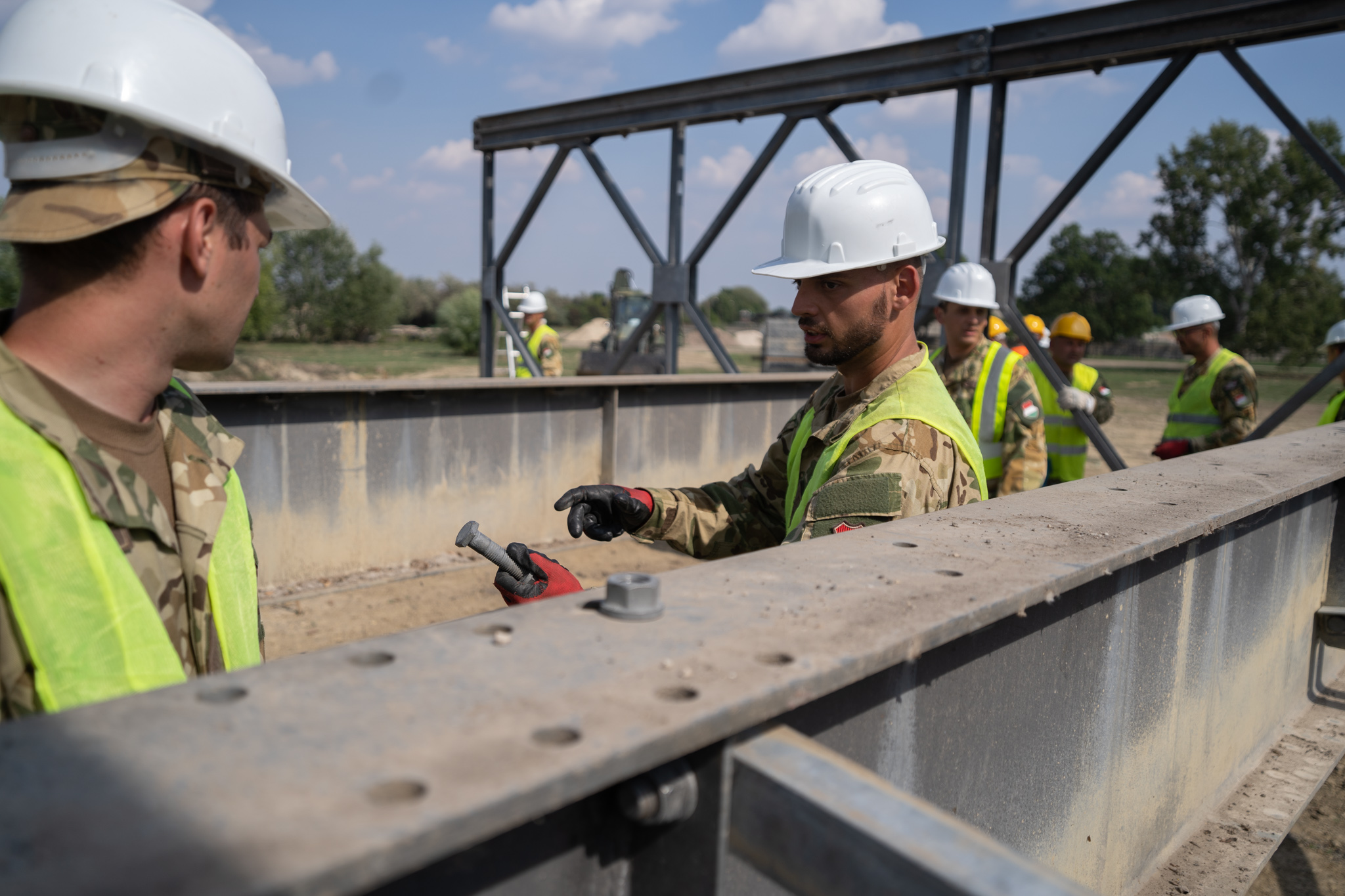 MABEY UNIVERSAL hídépítő szintentartó kiképzés zajlott alakulatunk gyakorló terén az elmúlt két hétben egy nemzetközi felajánlás kapcsán. A hídépítés folyamatát megtekintette a DUNA ASZFALT ZRT. 19 fős mérnök csoportja kölcsönös szakmai tapasztalatcsere keretében. A hídkészlet 45 méter hosszú és maximum 100 tonna teherbírású híd megépítésére alkalmas. A híd hasznosságát mi sem bizonyítja jobban, mint az, hogy 2020 – ban az alakulat katonái megépítettetek és fenntartottak egy 36 méter hosszú és 10 méter széles hidat MABEY UNIVERSAL hídkészletből, amely másfél év időtartamban segítette a zavartalan gyalogos, kerékpáros és gépjárműforgalmat a Kapos folyó felett, Pincehelyen.