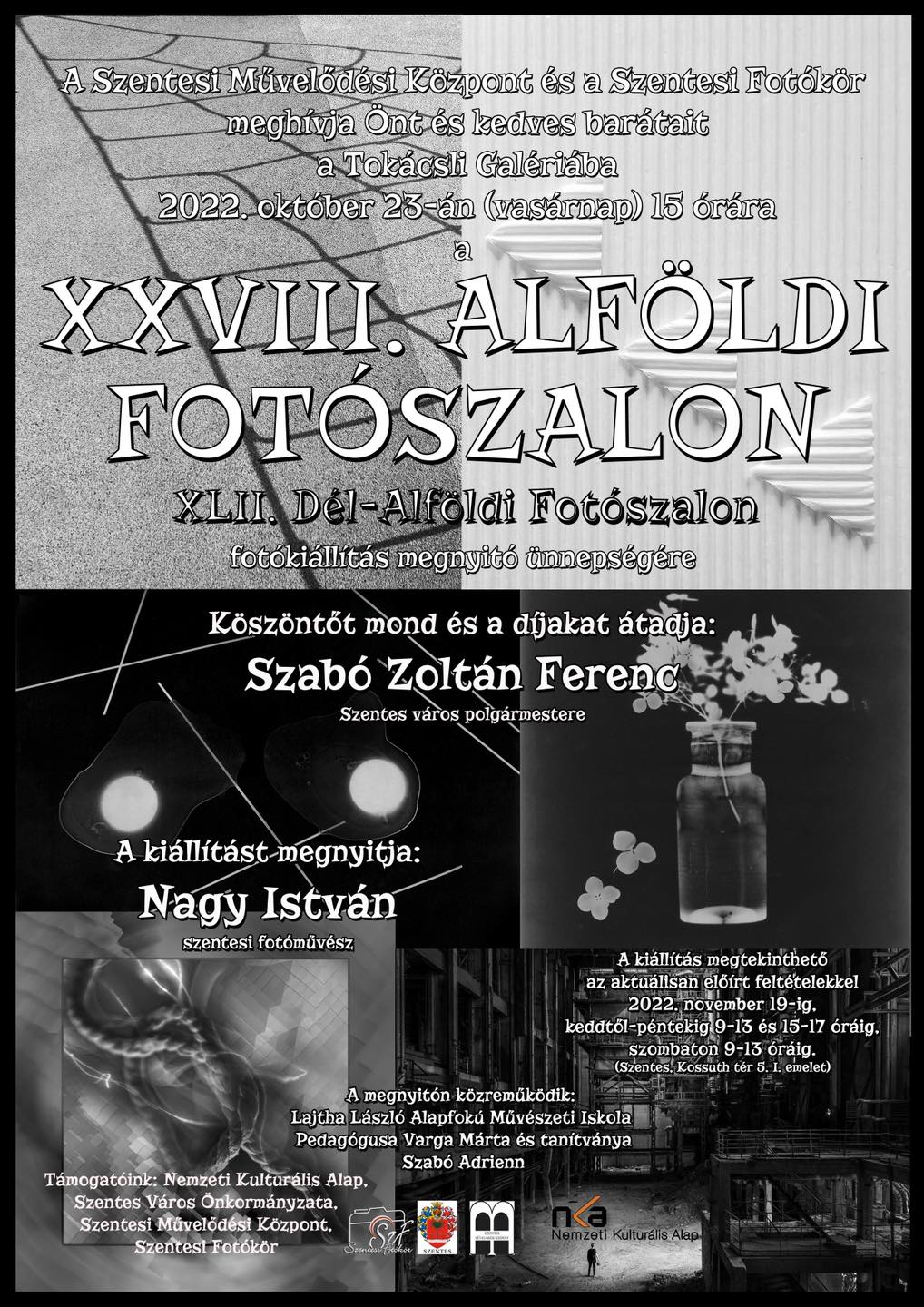 Október 23., 15.00 óra XXVIII. Alföldi Fotószalon kiállítás megnyitója – Tokácsli Galéria (Kossuth tér 5. I. emelet) A kiállítás megtekinthető november 19-ig az intézmény nyitvatartási idejében.