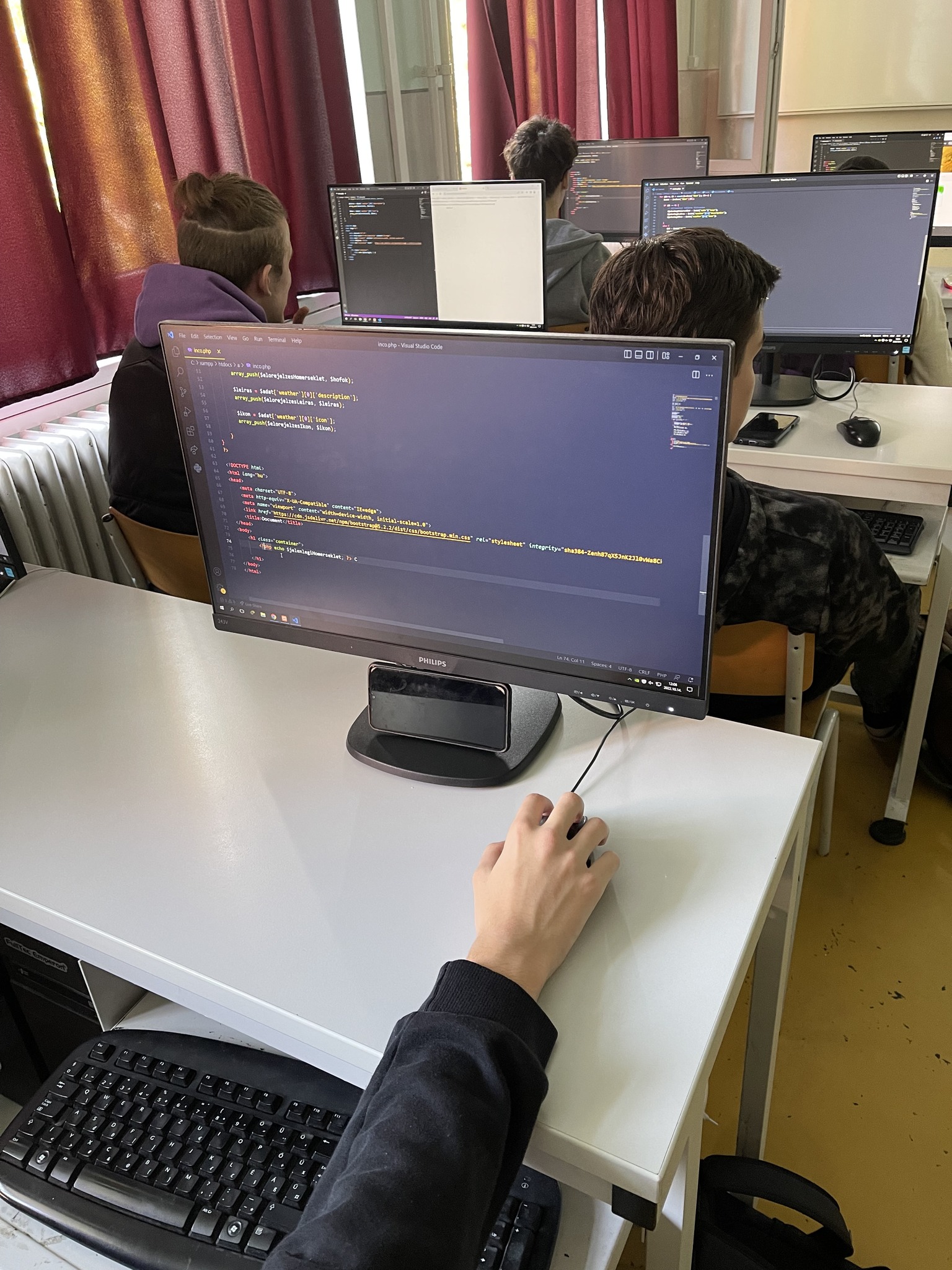 11. évfolyamos szoftverfejlesztőink a tanítási órák tananyagán messze túlmutató feladatot végeztek el: komplett időjárás-előrejelző weboldalt készítettek. Gondosan terveztek, programoztak, majd teszteltek – az elkészült kódokat feltöltötték az internetre, hogy saját számítógépükön, mobiltelefonjukon is kipróbálhassák az élő, folyamatosan frissülő időjárásjelentést. Gratulálunk a meteorológia és az informatika világát sikeresen ötvöző tanulóinknak! 🤗