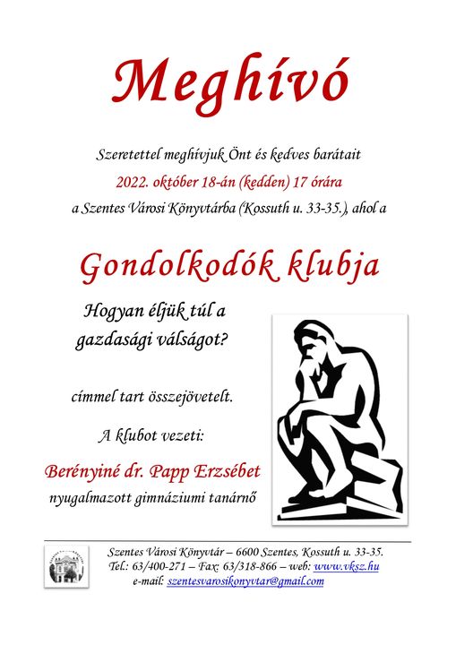 Kezdőlap Könyvtár Ma a gondolkodók klubjába várjuk az érdeklődőket….