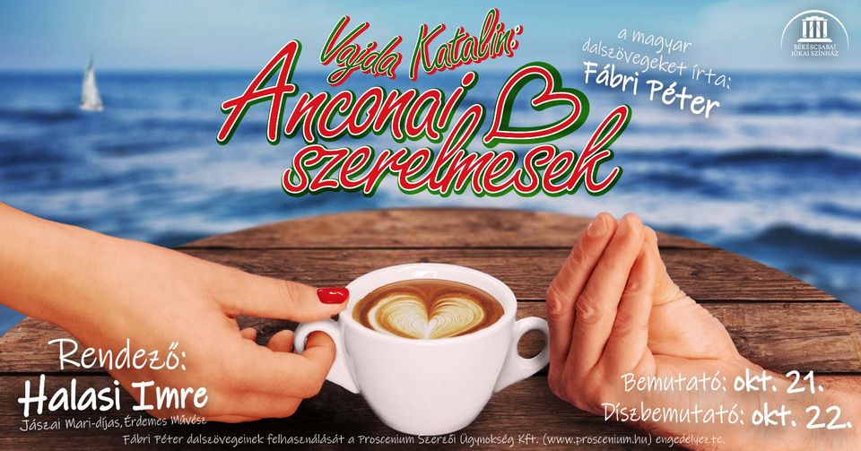 Vajda Katalin Anconai szerelmesek című zenés komédiáját mutatta be a Békéscsabai Jókai Színház október 21-én. A darabot Halasi Imre Jászai-díjas, Érdemes Művész rendezésében láthatta a csabai közönség, és a Tóth József Színház és Vigadó is műsorára tűzi ebben az évadban. Az ajánlót a városi hetilap 6. oldalán találják.