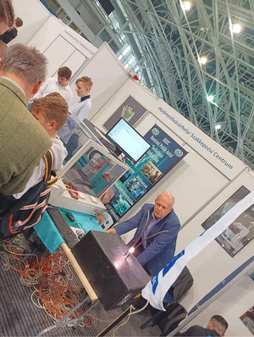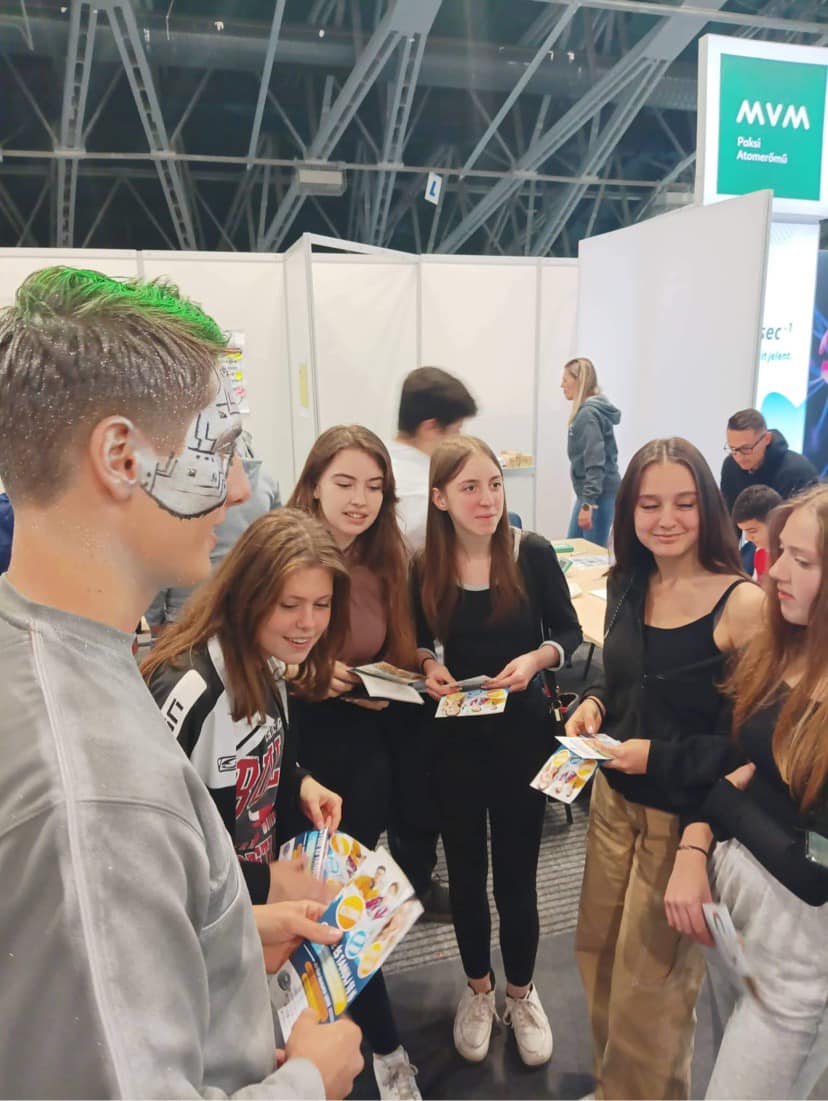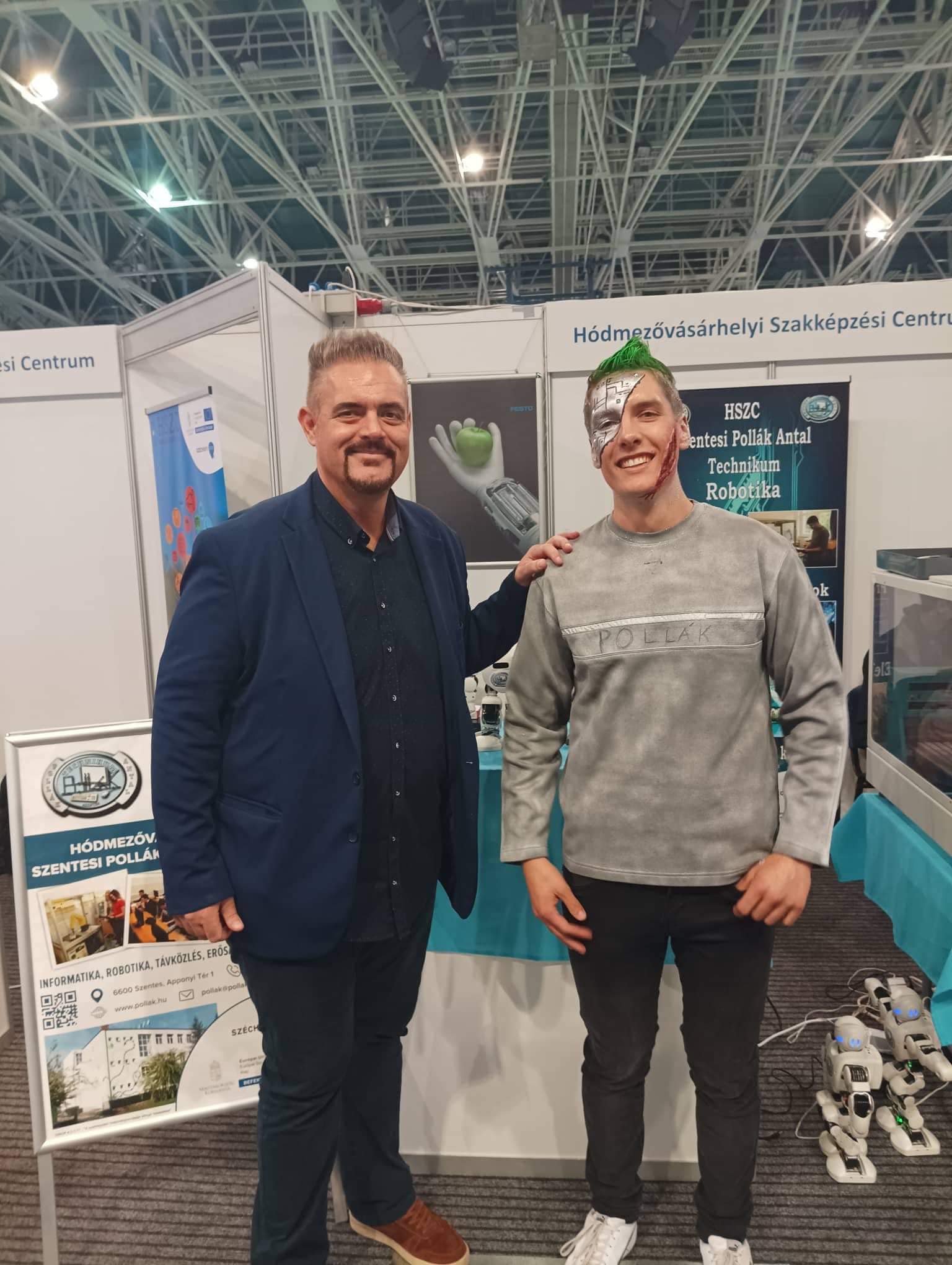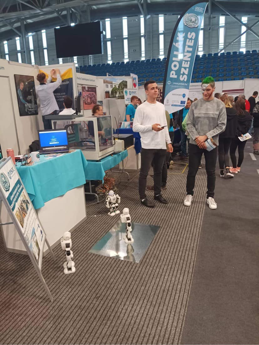 A Pollák pedagógusai és diákjai ma a szegedi Mi a pálya? műszaki pályaválasztó rendezvényen képviselték iskolánkat, ahol látványos, interaktív, élmény alapú bemutatók segítségével irányították a megjelent nyolcadik osztályosok figyelmét az informatika és az elektronika ágazatra. A cyber-világot idéző reklámarcunkkal a program sztárvendége, Orosz György – a Showder Klub humoristája – és az érdeklődő diáklányok is szívesen készített közös fotót! 😉
