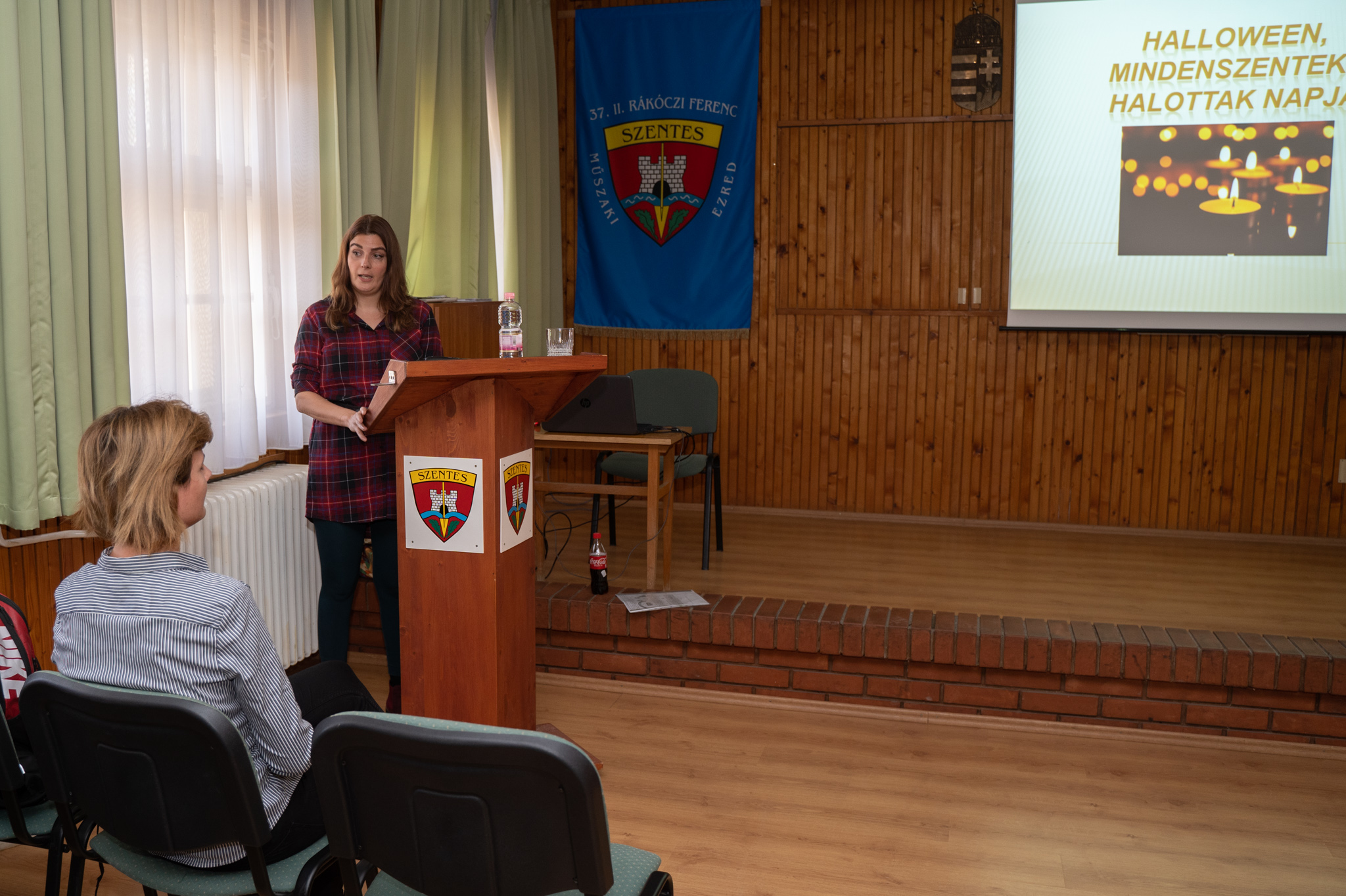 A közelgő ünnepek közeledtével, közművelődési délután keretében Szoboszlai Barbara, a szentesi Koszta József Múzeum munkatársa tartott előadást Halloween, Mindenszentek és Halottak napja kultúrtörténeti vonatkozásairól, az eredetükről, a jelentésükről és az ünnepi szokásokról. Október 31-én, november 1-én és 2-án három különböző dolgot ünneplünk, de mégis közös bennük az, hogy valamilyen módon mindhárom ünnep az elmúlásról szól. Halloween ünnepének kelta, római és keresztény gyökerei vannak. Október utolsó napján a hiedelem szerint a holtak visszajárnak az élők közé. A hagyományos tűzgyújtás, az ijesztő töklámpás, a jelmezek felöltése azt a célt szolgálják, hogy az emberek megvédjék magukat és otthonaikat az ártó szellemektől. Mindenszentek napja a katolikus keresztény világ egyik kiemelt ünnepe, a kereszténységért mártír halált halt szentek emléknapja. Halottak napján emlékezik meg a katolikus egyház az elhunyt, de az üdvösséget még el nem nyert híveiről. A magyar néphít szerint ezen a napon látogatnak haza az elhunytak lelkei.