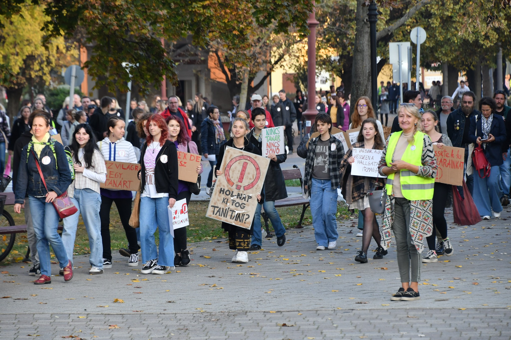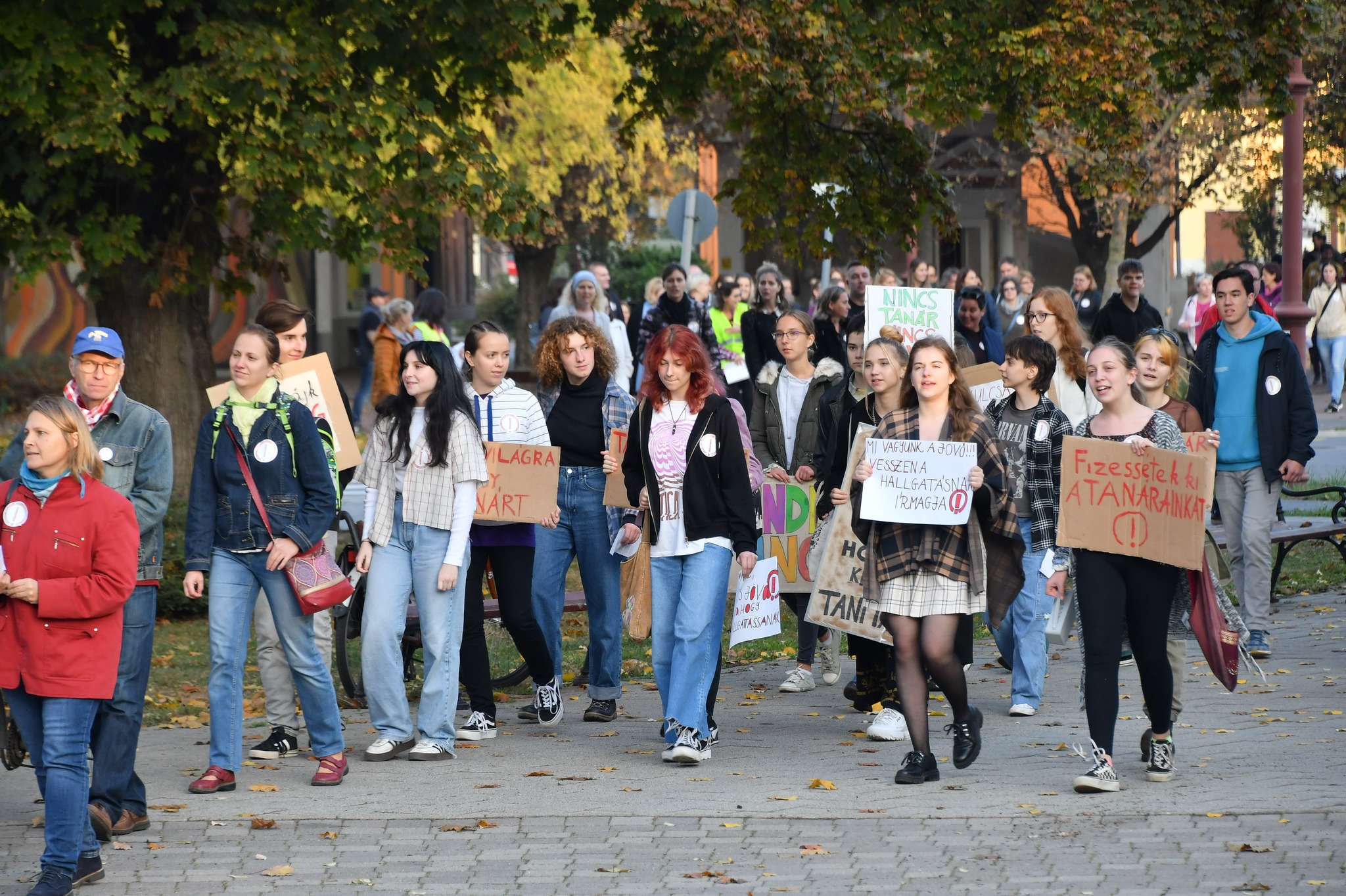 Az oktatás nemzeti ügy, A sztrájk alapjog, Holnap ki fog tanítani?, Ha nincs tanár, nincs orvos!, Fizessétek ki a tanárainkat!, olvashattuk a transzparenseken azon az élőláncon, melyet az oktatásért hirdetett meg az Egységes Diákfront október 27-re, Szentesre. Az élőlánc a Rigó Alajos iskolától a Rózsa Gábor térig ért, a szimpatizáns autósok dudálással biztatták a résztvevőket. Tudósításunkat a városi hetilap 4. oldalán olvashatják.