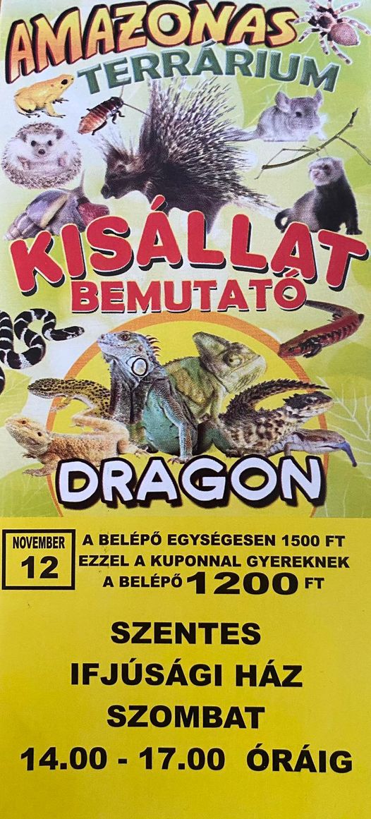Kezdőlap Kultúra és szórakozás Szentesi Művelődési Központ November 12-én az Ifjúsági Házban Kisállat Bemutatóra várják az érdeklődőket!…